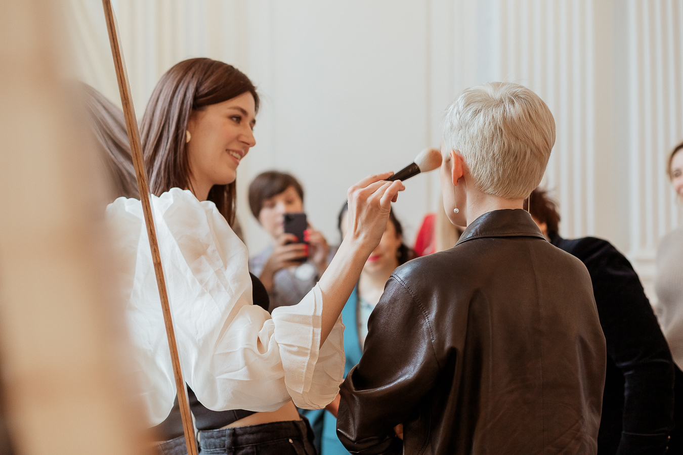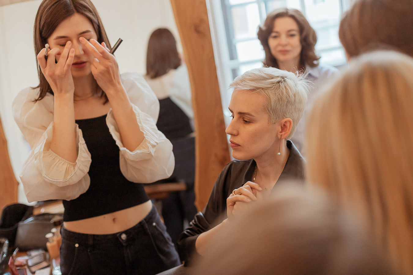 Мы собрались субботним утром в красивой студии, выпили игристого, познакомились. А дальше на протяжении почти двух часов Даша делала мне макияж, рассказывая о каждом шаге и давая рекомендации относительно выбора средств, техник, оттенков. Я делилась своим опытом выполнения мейкапа по Дашиным заветам. Девушки внимательно смотрели и даже записывали — это было мне очень приятно. Это не была скучная лекция, это не был урок макияжа, это не была индивидуальная консультация, хотя такие Даша тоже делает. Это была мейкап-вечеринка, возможность по-новому взглянуть на отточенные годами приемы, сменить угол зрения, узнать о новых продуктах и техниках, которые ты никогда не применяла. По итогам встречи, которую мы собираемся повторять, родился список принципов хорошего макияжа. Это маленькая, крохотная частичка того, что мы обсуждали солнечным весенним днем.