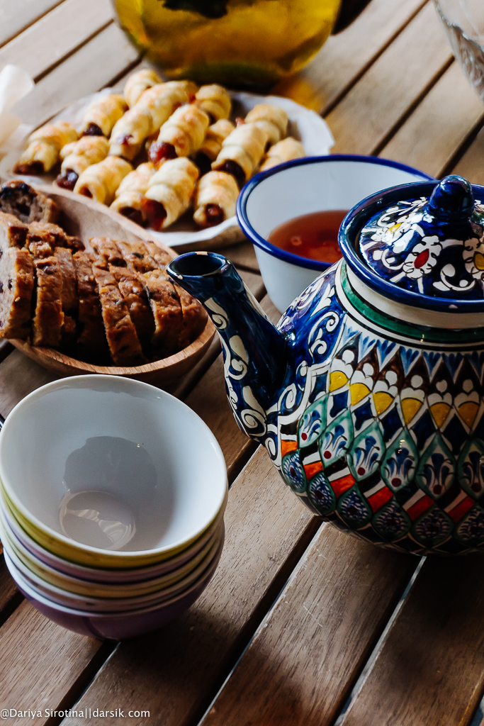 - чай с вареньем и банановым кексом.