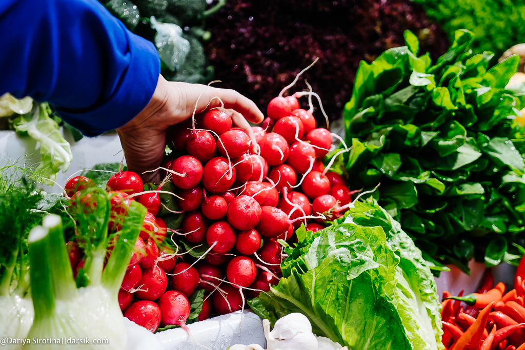 Утро началось со встречи на Даниловском рынке. Несмотря на то, что все морепродукты Егор и его су-шеф Алексей привезли с собой, на рынок нам все равно было нужно за овощами, травами и фруктами. И если моё утро начало с этой встречи в 10 часов, то Егор и Алексей приехали на Даниловский на пару часов раньше для того, чтобы изучить ассортимент и прикинуть, что брать.