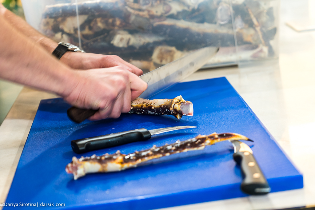Представьте, что вы шеф успешного ресторана, у вас на кухне все четко, все всегда по рукой, а ваши подчиненные сразу понимают, что вы хотите и делают все так, как нужно. А теперь представьте, что вы прилетели из Владивостока в Москву, у вас джет-лег, вы пашете каждый день в столице уже вторую неделю и вы стоите посреди кухни, хорошей, но все же не ресторанной, в окружении людей, о профессиональном уровне которых вы ничего не знаете, и собираетесь доверить им, во-первых, ценные продукты, а, во-вторых, в некотором роде свою репутацию, потому что гости, которые придут вечером на ужин, придут туда ради вас. Ну и ради краба, конечно. Представили?