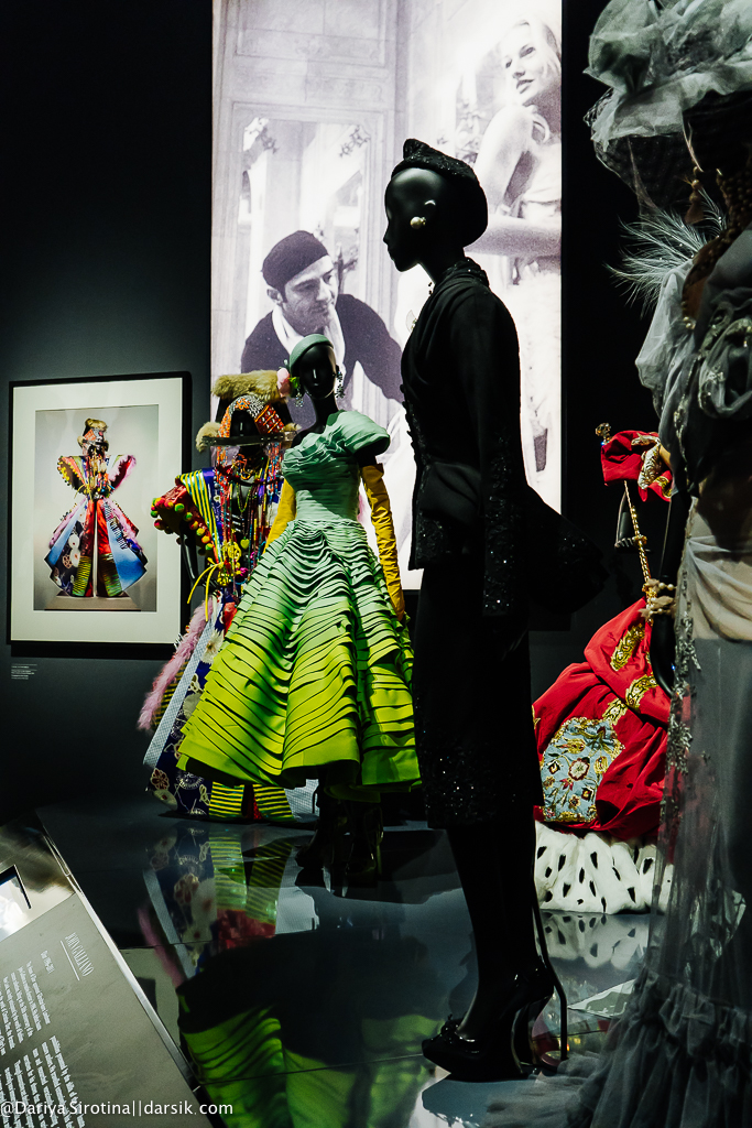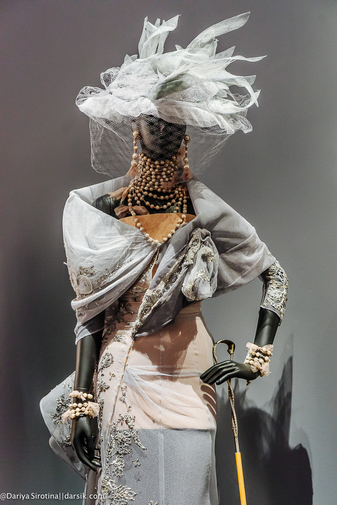 Самый яркий период для Dior, но не мой самый любимый, — правление Джона Гальяно, покинувшего пост креативного директора после скандала в 2011 году. Манера Гальяно броская, немного китчевая, мне не близка. От Билла Гейтена (2011-2012) на выставке следов нет, зато замечательно представлены работы Рафа Симонса (2012-2015) и Марии Грации Кьюри. Именно они вместе с Сен-Лораном олицетворяют и близкую мне эстетику, и дух дома наилучшим, на мой взгляд, образом.