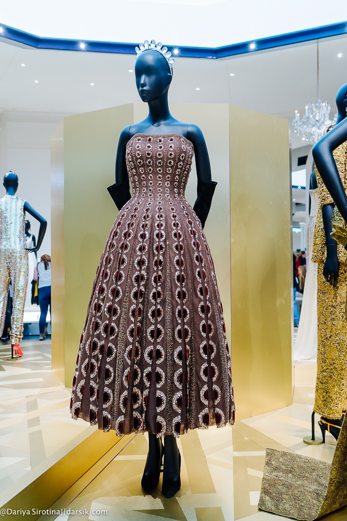В том же разделе, в котором представлено это знаменитое платье, выставлены наряды, созданные Диором для представительниц британской аристократии.
