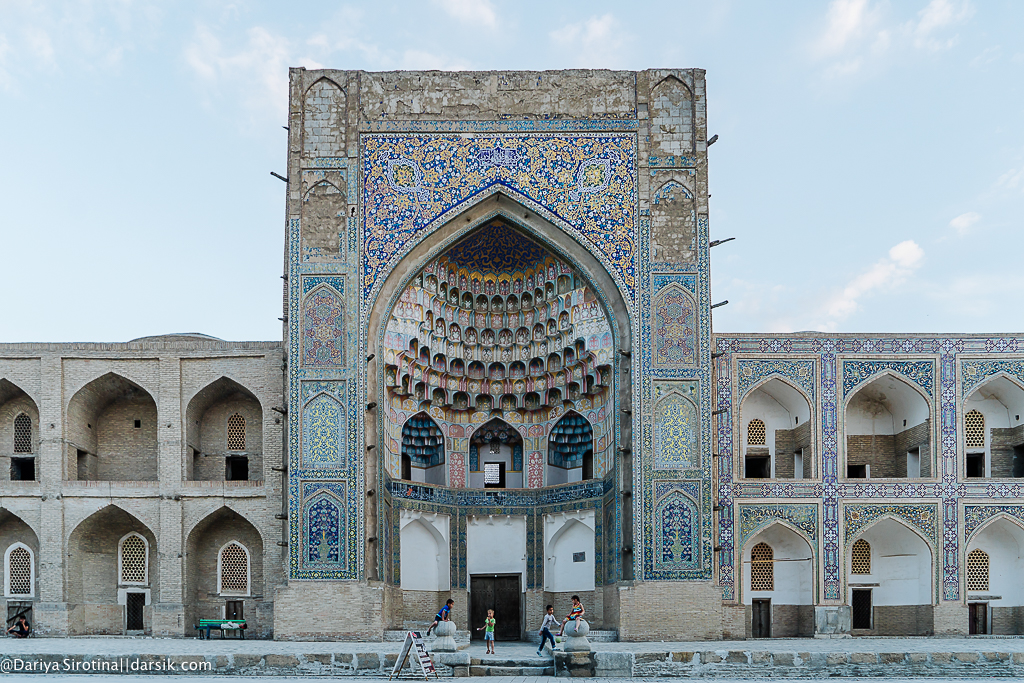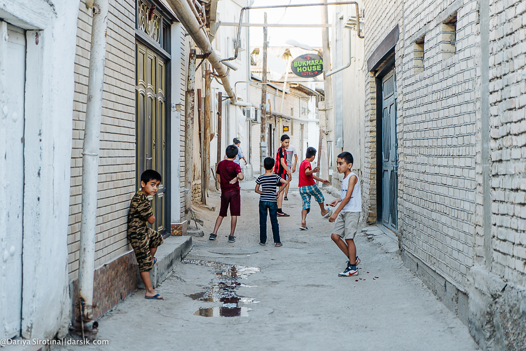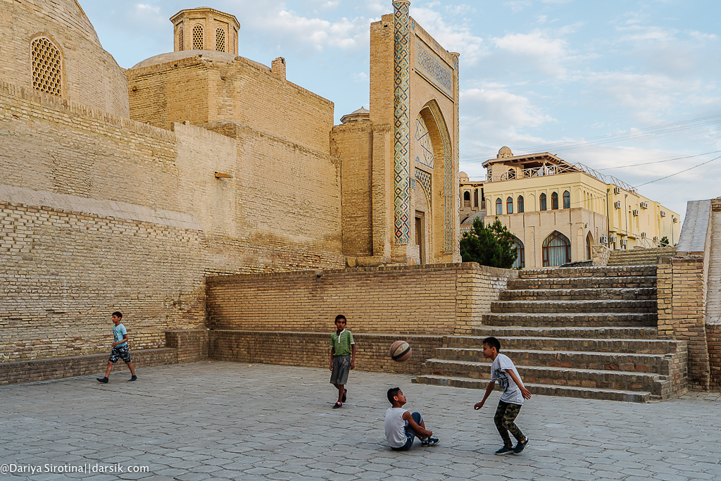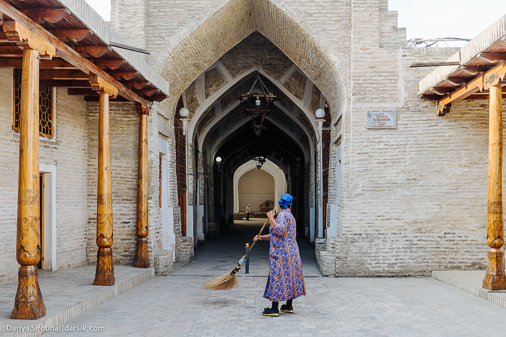 По утрам Бухара наполнена не только светом невысокого солнца, делающим песчано-серые улицы золотыми, но и шелестом веников по мостовым. Веник – символ Узбекистана. Метут все и везде – одна из моих гостей, когда я спросила о самом большом удивлении от Узбекистана, сказала, что не ожидала увидеть такое количество нарядных, в украшениях и с макияжем женщин, метущих улицы и переулки с улыбкой на лице. Бухара небольшая: выбирайте отель в старом городе, чтобы иметь возможность выйти с самого утра и увидеть город полусонным.