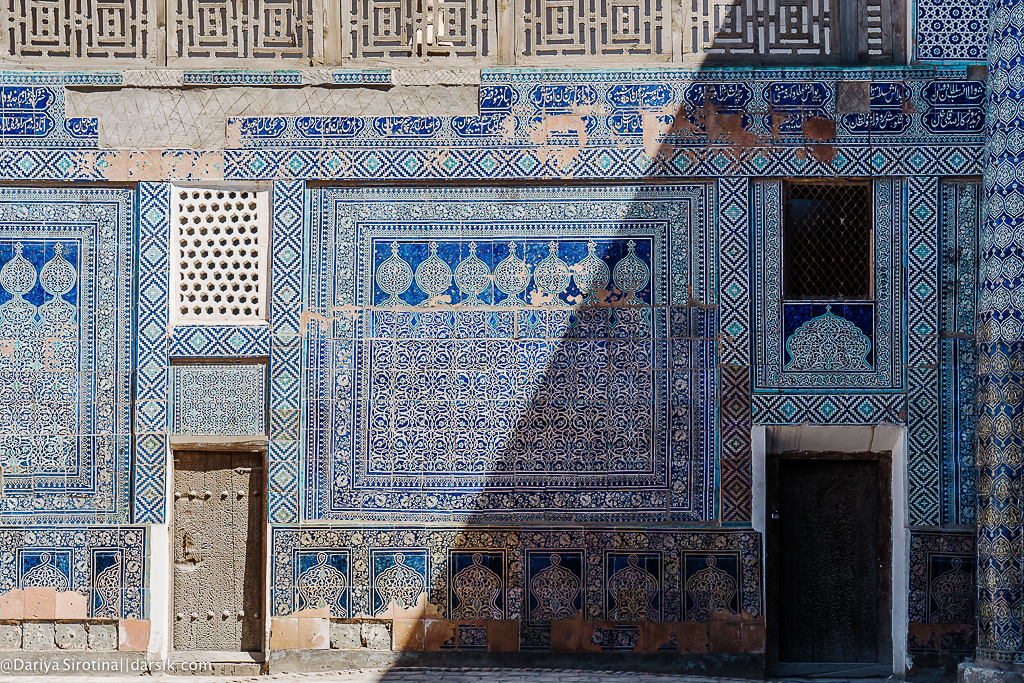 Хива похожа на халат с яркой подкладкой. Поднимитесь на один из минаретов – вы увидите однотонный, песчаного цвета город, лишь изредка расцвеченный всполохами ярко-синей мозаики внутренних дворов мавзолеев и дворцов. Говорят, что Хива была цветной вся и вставала из марева жары перед утомленным пустыней путником сказочным изумрудным городом.