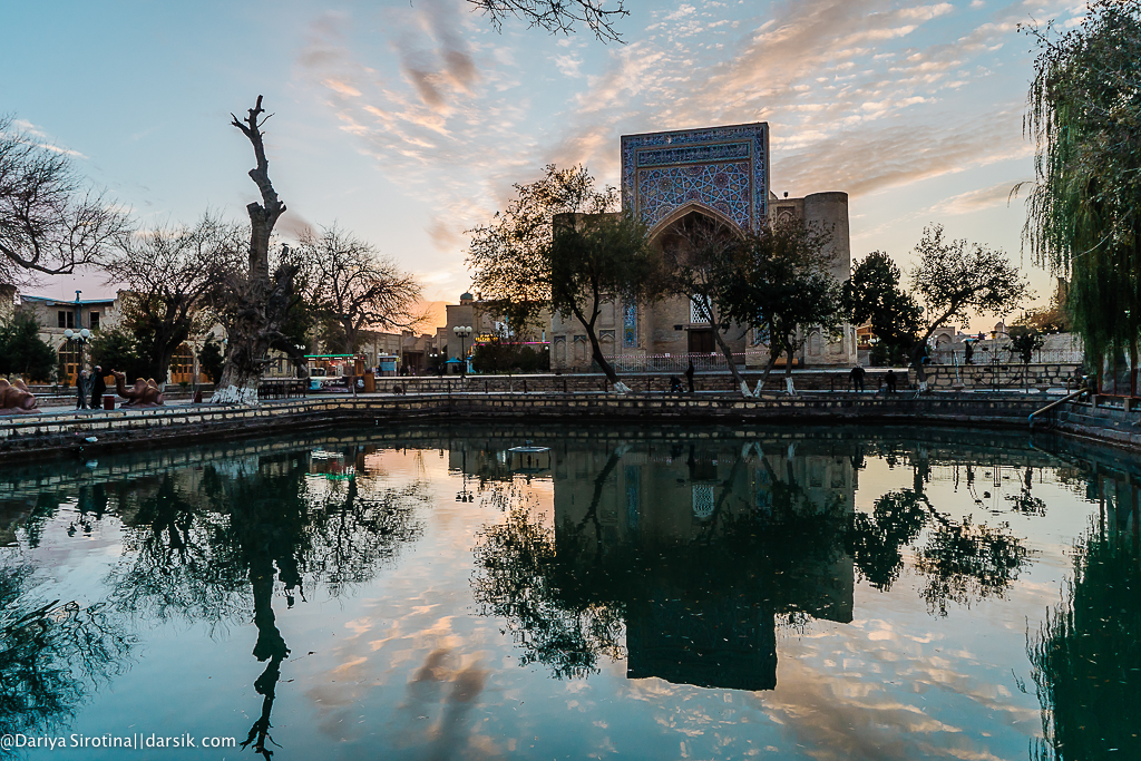 О Бухаре в Узбекистане говорят святая Бухара. Во всем мире, считают узбеки, свет льется сверху и только в Бухаре он идет снизу, от земли. Вы, приехав как турист, а не паломник, увидите живой и понятный город, лежащий внутри частично сохранившихся крепостных стен, полный небольших галерей, ремесленных мастерских, кофеен (да-да, тут есть и кофе, и штрудели!), магазинов с золотым шитьем, антиквариатом, платьями, платками, ножами, украшениями, коврами.