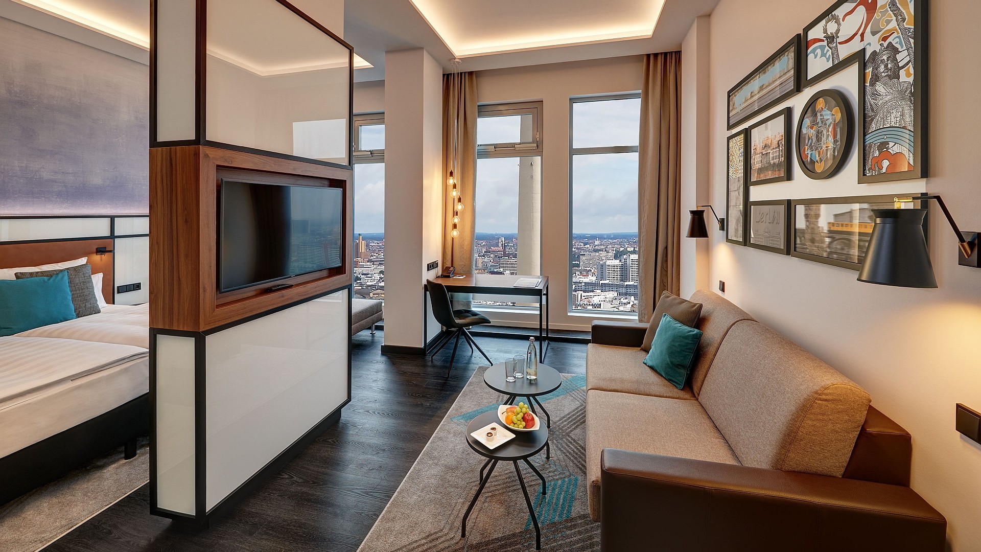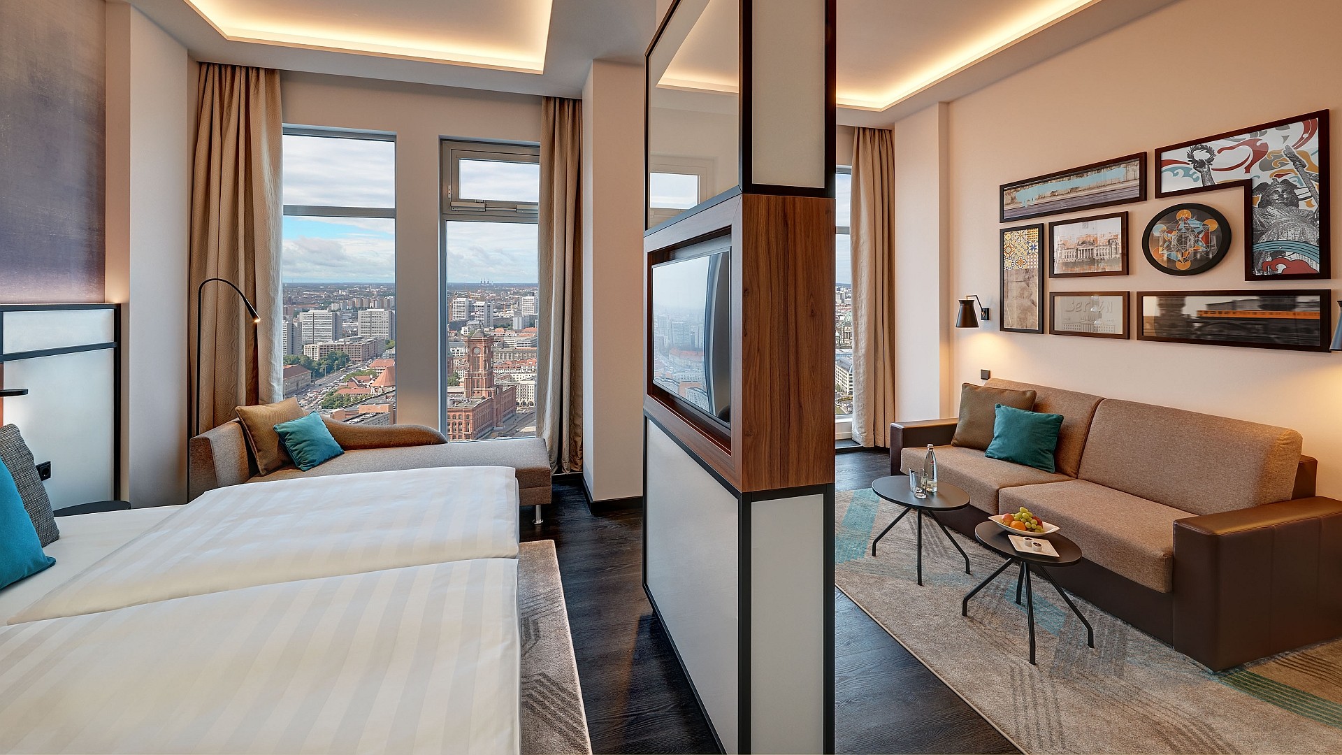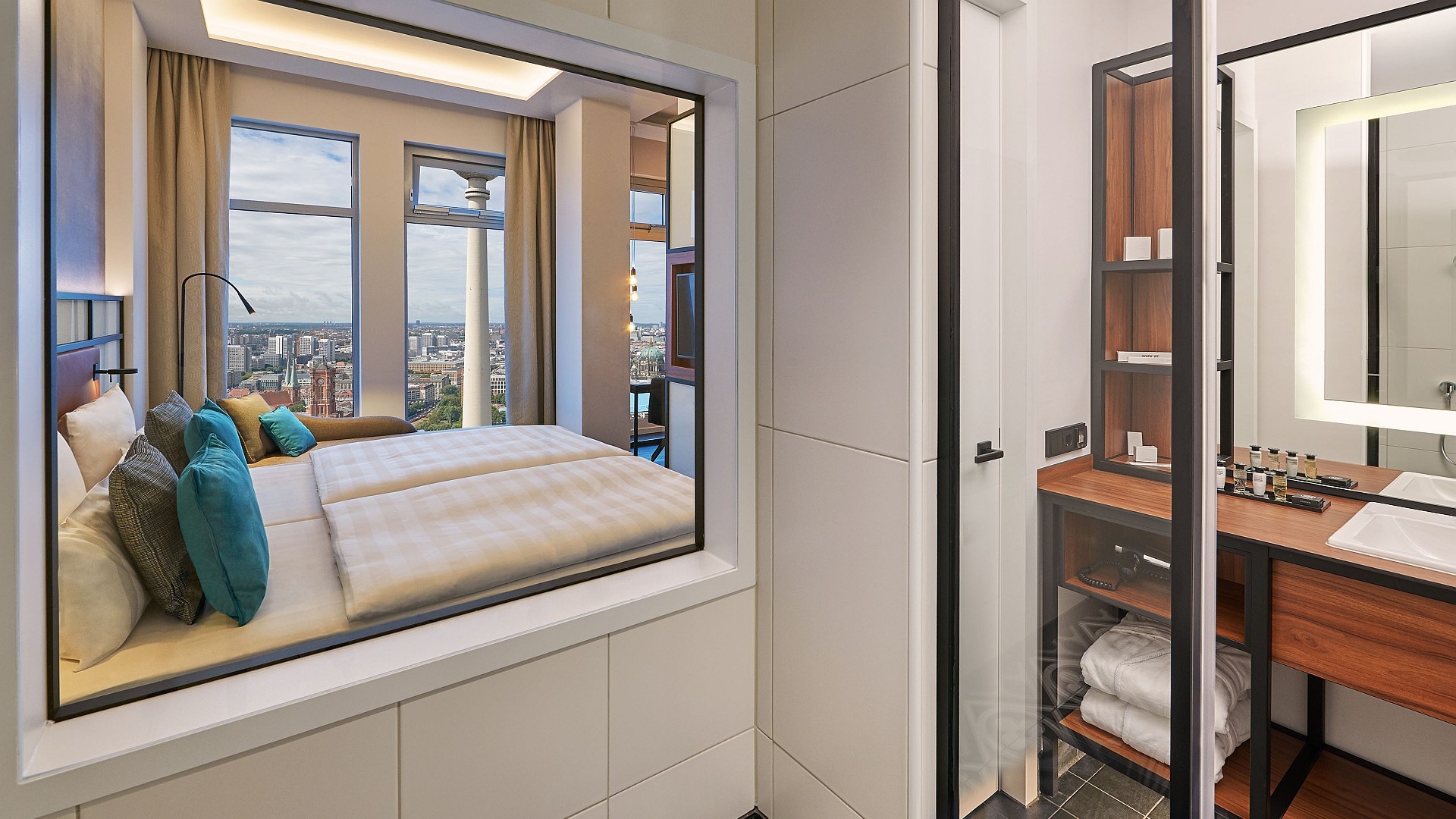 Весь 37 этаж самой обычной сетевой гостиницы превратили в просторные и современные пентхаусы с окнами от пола до потолка и видами не просто на центр Берлина, а на весь город.