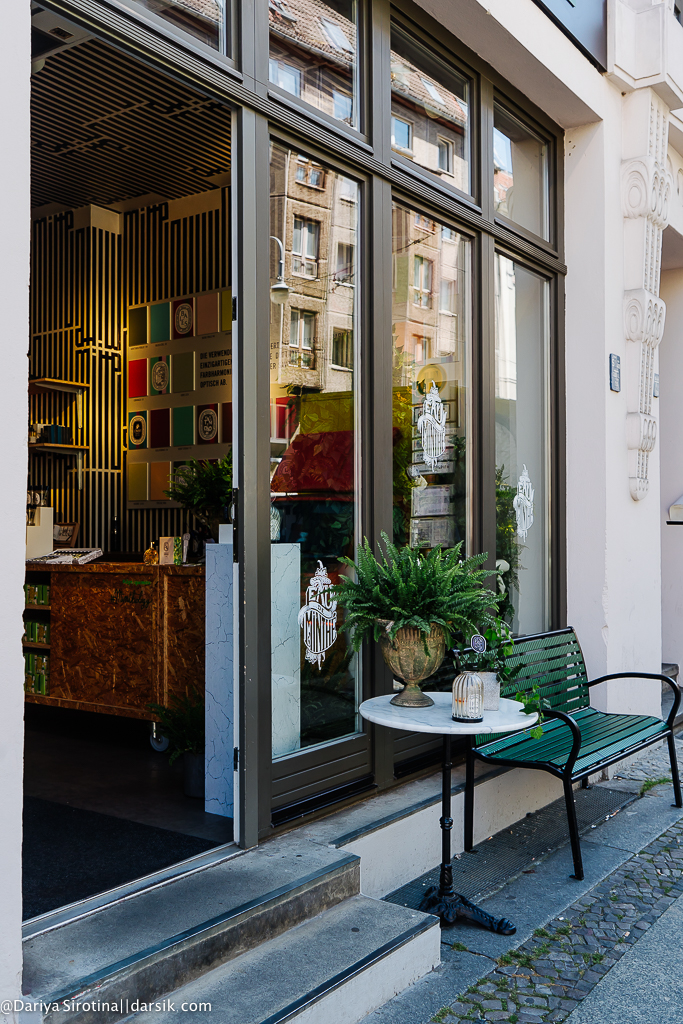 Kaffe Käthe — милейшее кафе моей читательницы Юли на уютной тенистой улочке в Пренцлауэрберге. Отличный кофе, очень вкусные бирхер-мюсли и прекрасная выпечка, например, лимонная меренга. Десерты Юля печет сама, а ее муж Олег отвечает за кофе.