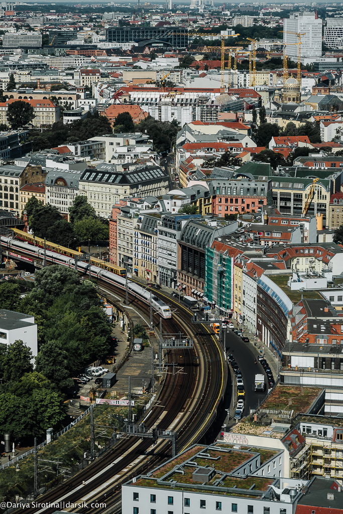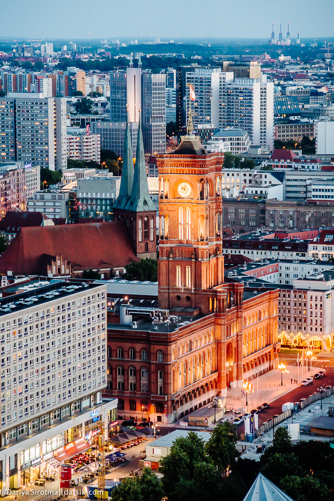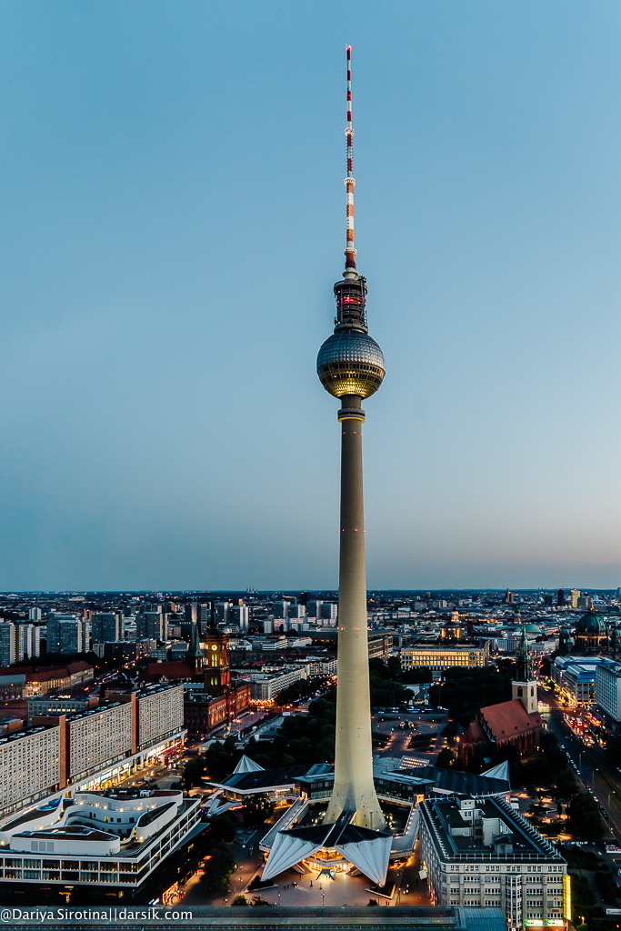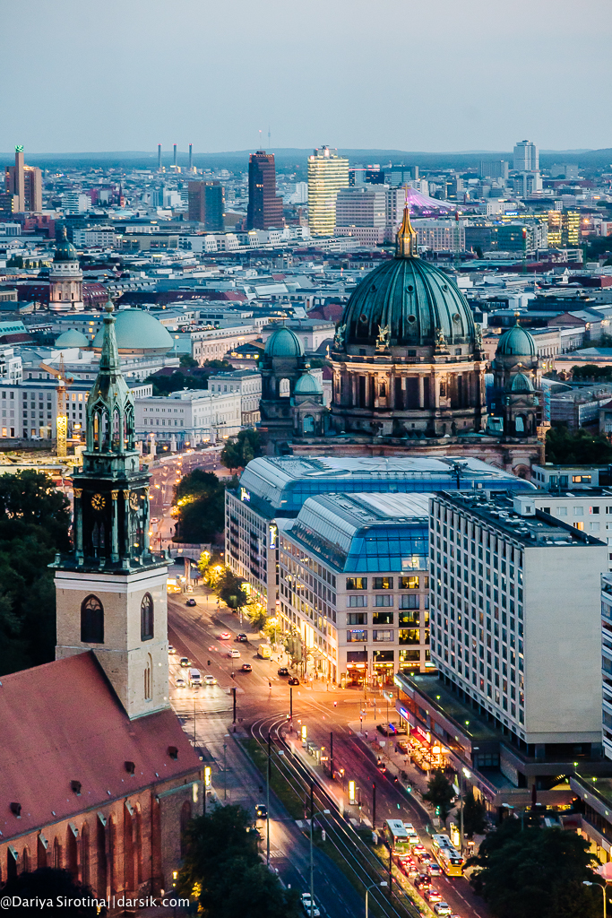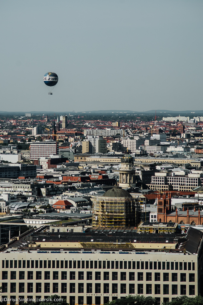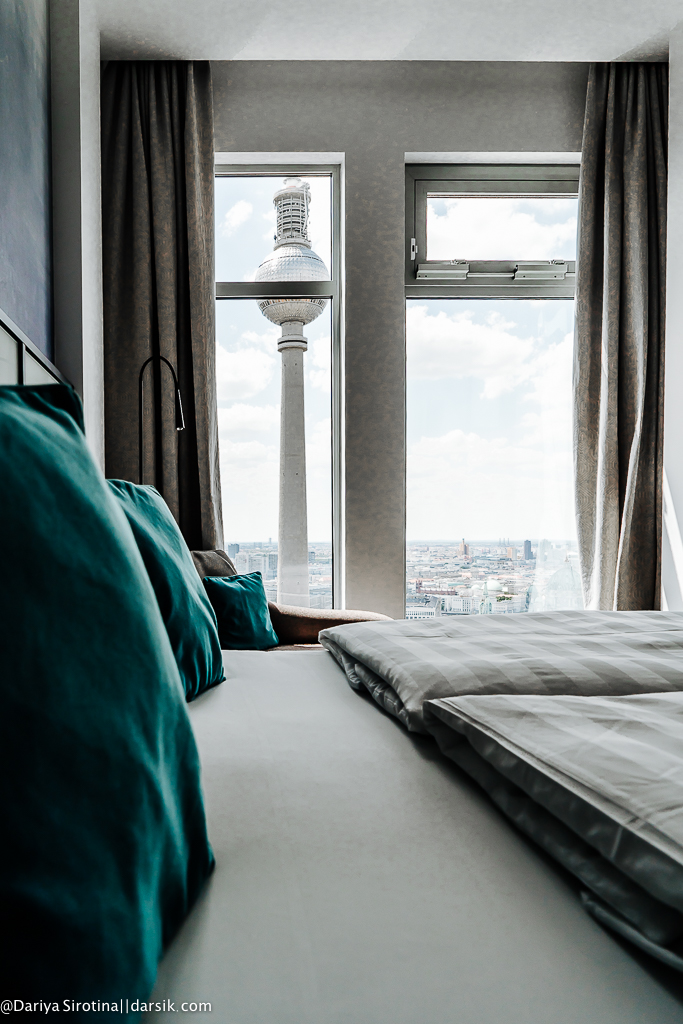 Сидя у окна, можно изучать берлинскую географию: отсюда видно и Рейхстаг, и Новую синагогу, и огромное зеленое пятно парка Тиргартен, и купол Берлинского собора, и Красную ратушу, и мою любимую площадь Жандарменмаркт. Наверное, этот номер — лучшая смотровая площадка в городе. Я обожаю виды с высоты, скучаю видам из нашей городской квартиры (у нас, правда, 36, а не 37 этаж), а потому радовалась как ребенок, подойдя к окну.