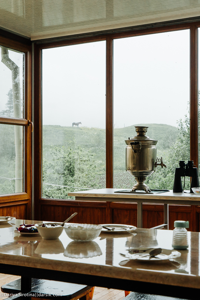 Наталья и Михаил Рудометкины — единственные в Фиолетово, кто принимает гостей. Соседи поначалу волновались, но когда увидели, что бесчинств никаких гости не творят, а собираются за самоваром и пирожками, успокоились. В гости к Наталье и Михаилу можно приехать на чай или на полноценный обед, расспросить их о быте и удивиться тому, что об истории переселения своих предков они рассказывают так, будто бы она произошла с ними лично.