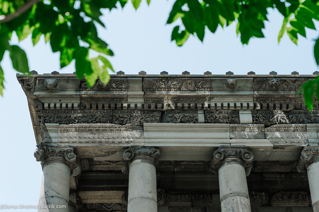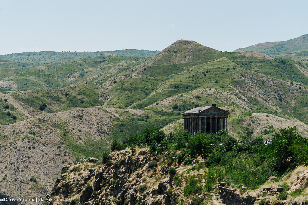 Я и не думала, что такие места есть в Армении! Гарни — это языческий храм, построенный в первом веке н.э. и по счастливой случайности не уничтоженный в момент, когда Армения приняла христианство. Храм благополучно простоял до 17 века и был разрушен землетрясением. Современный вид — плод реконструкции. Меня это немало удивило — я вспомнила полуразрушенные храмы в долине Агридженто, которые ничего не потеряли от того, что их не привели в изначальный вид. В отличие от храмов в Агридженто, например, внутрь храма в Гарни можно зайти. Людей много; лучший вид на храм открывается из ресторана Garni Toun — см. первую фотографию. Там стоит и пообедать.