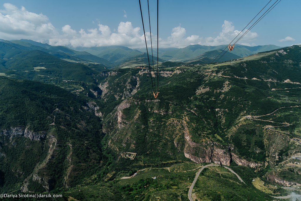 Это, без сомнения, одно из самых красивых мест Армении! Татевский монастырь (9-10 век) стоит на высоком утесе над ущельем; к нему сейчас ведет канатная дорога «Крылья Татева», построенная фондом Рубена Варданяна с привлечением частных инвестиций. Вокруг все сделано так, будто бы это Швейцария, а не Армения: красивые малахитовые горы, безупречная организация всего, что связано с приемом туристов, кафе с панорамным видом, информация на разных языках. Когда садишься в кабину канатной дороги, ты даже не видишь монастыря, он где-то там, за горами. От поездки действительно создается ощущение полета! Осмотрев сам монастырь, возьмите такси и поднимитесь на смотровую площадку в 5 минутах езды — виды оттуда открыточные. Мы ехали туда на переделанном в кабриолет «Запорожце» и это было восхитительно!