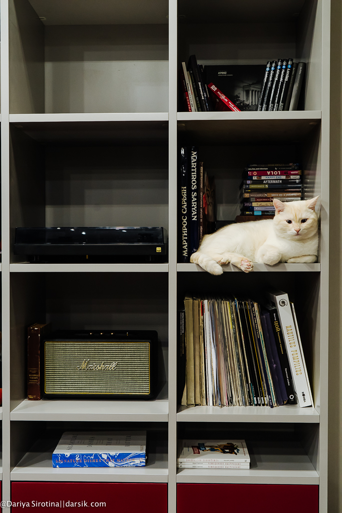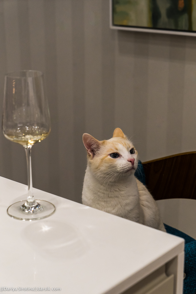 Котик, который за столом сидит, порыжел, так свет падает будто совсем-совсем рыжий)