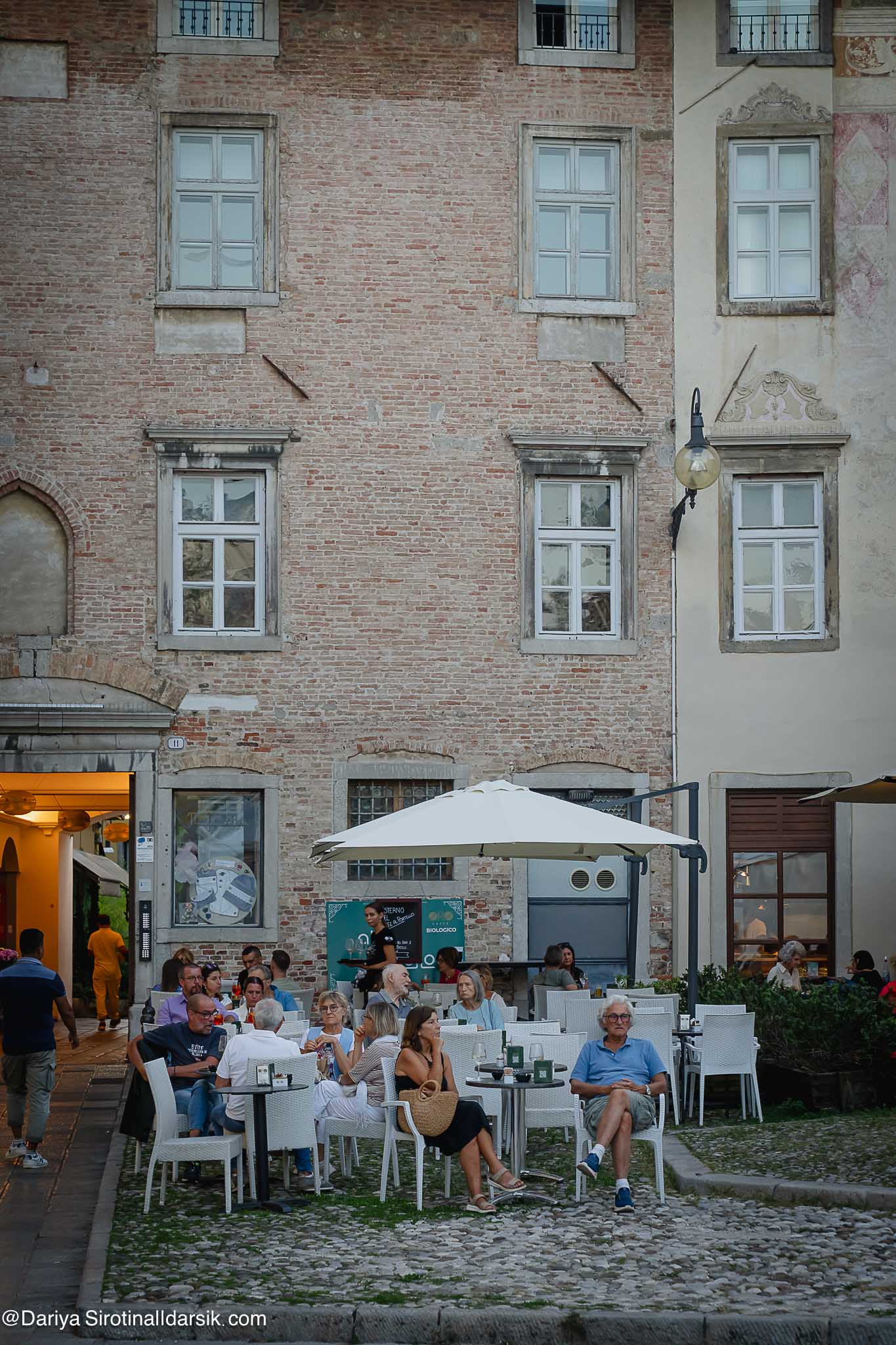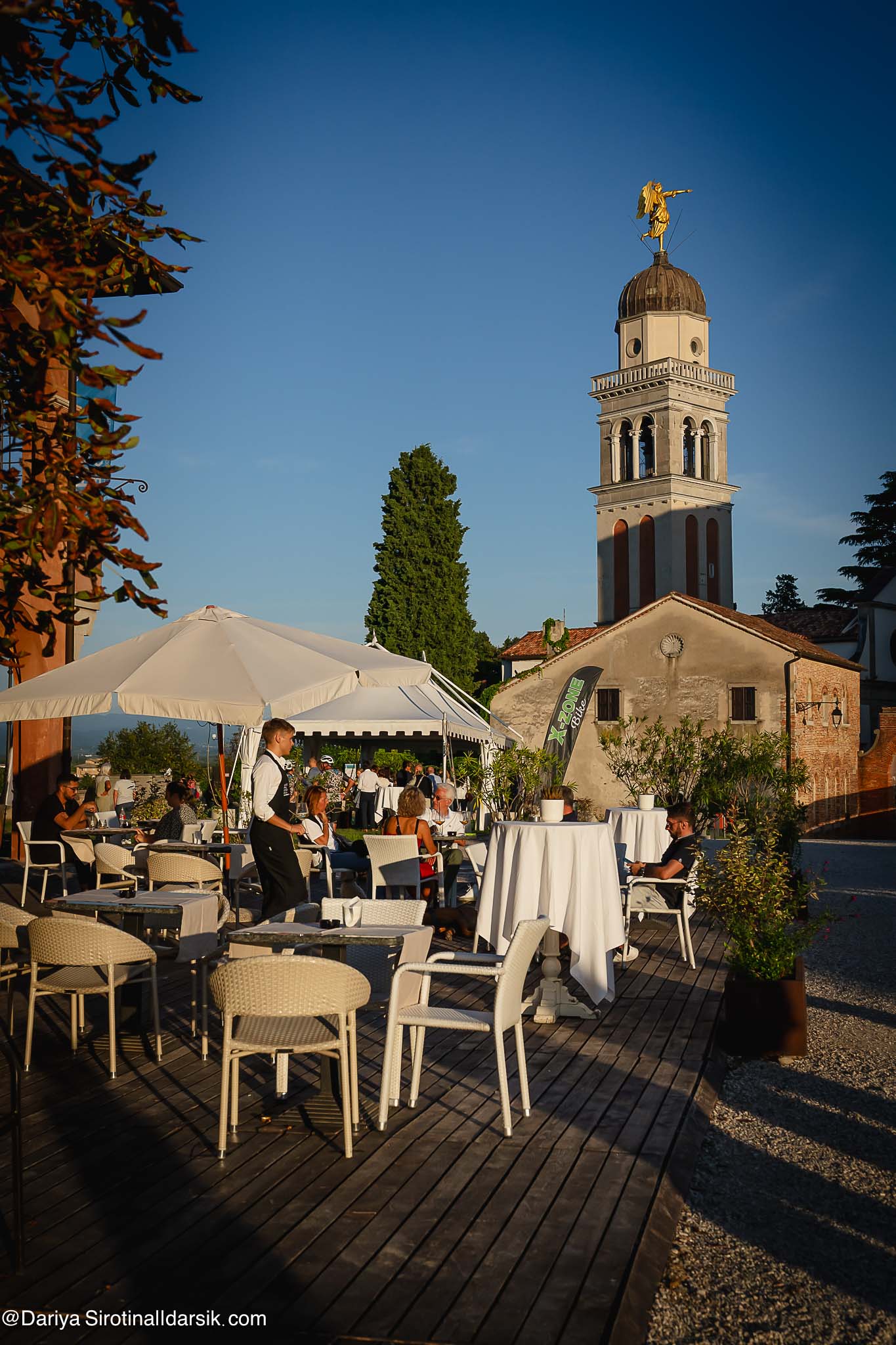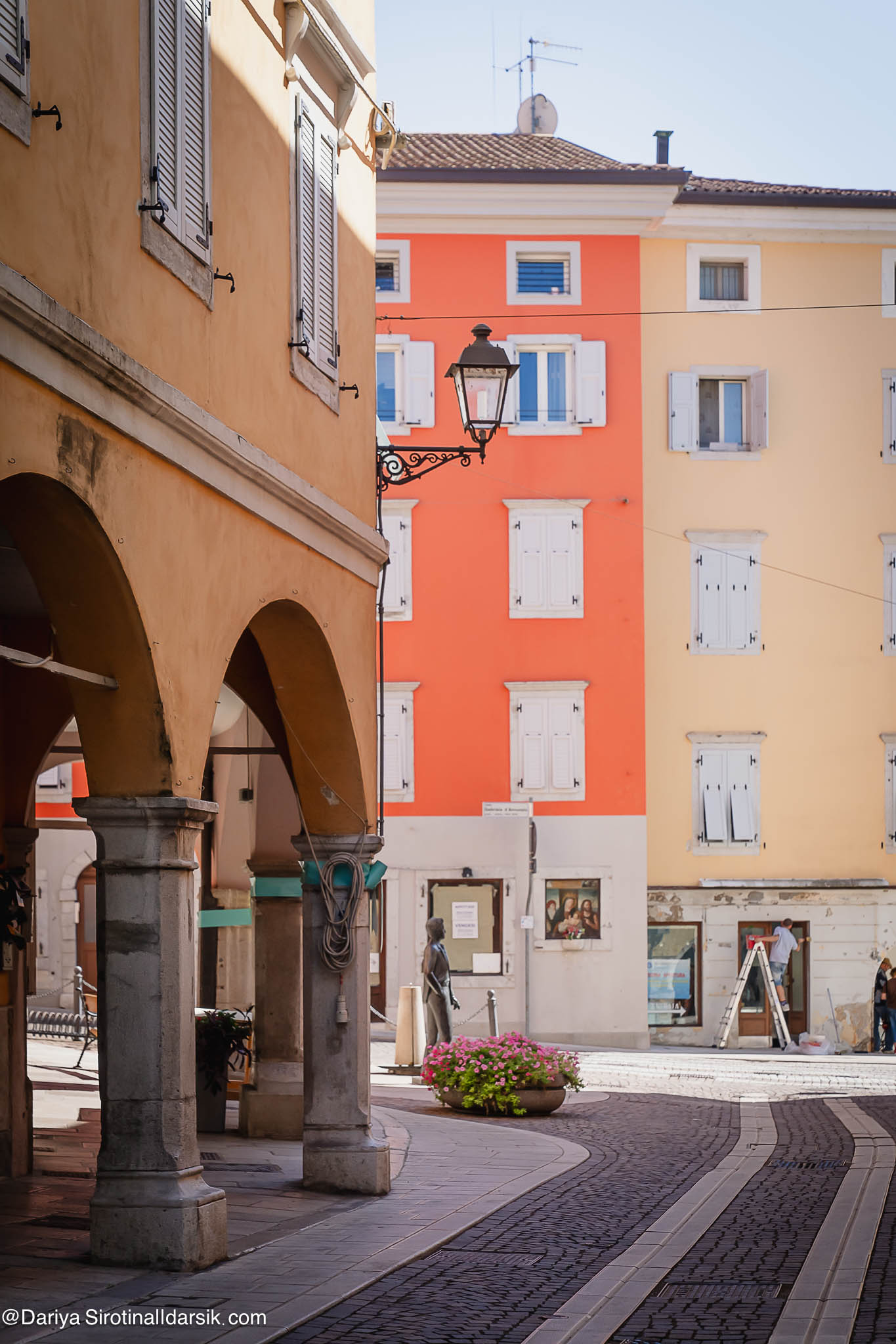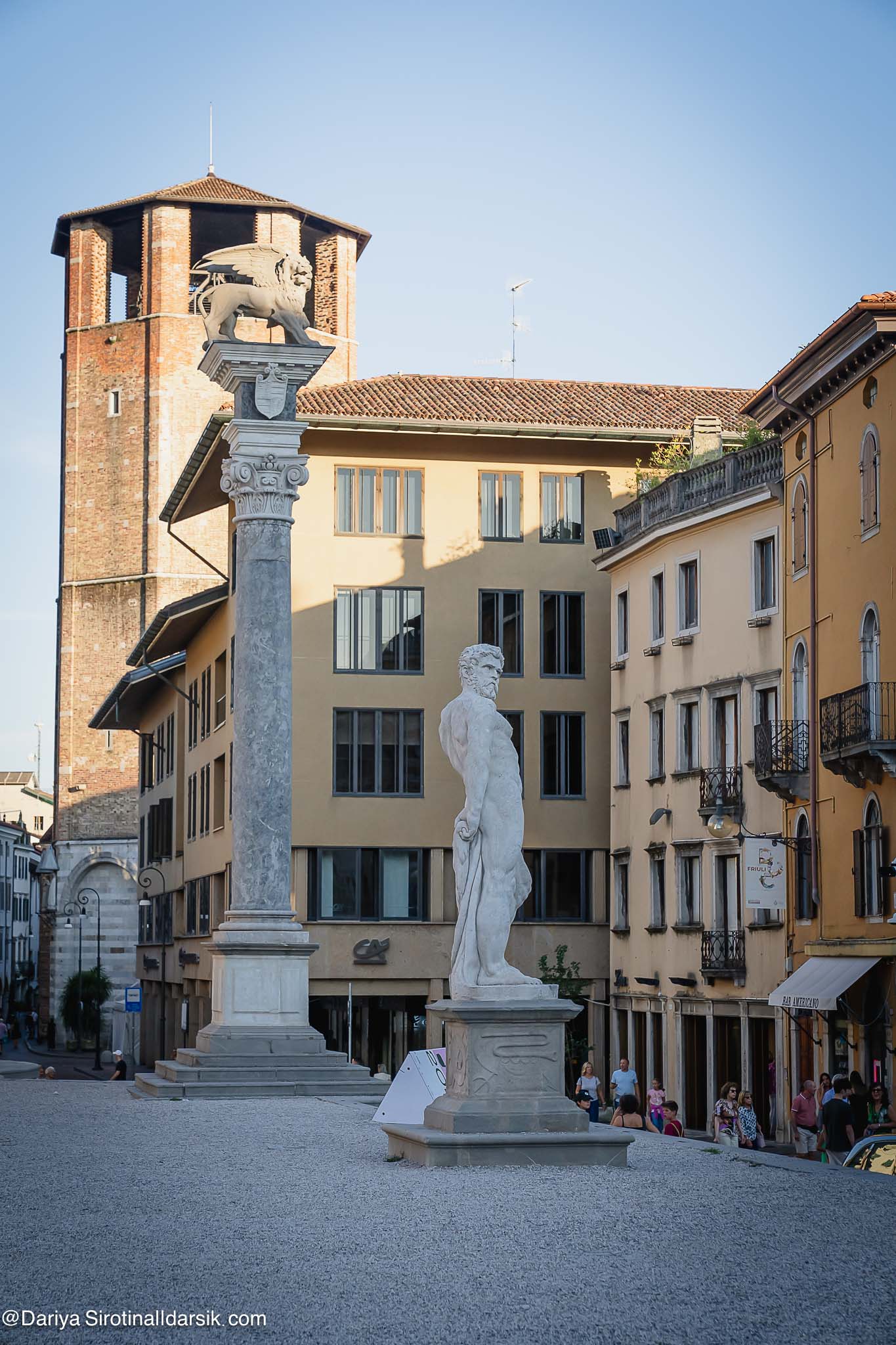 Удине — это моя новая большая любовь и город, в который я очень хочу вернуться для более обстоятельного знакомства. Удалось здесь провести всего несколько вечерних часов, но зато каких! Была суббота, весь город, кажется, гулял. Бурлящие улицы, заполненные террасы кафе, звон бокалов, сливающийся со звоном колокола, установленного на городском замке. Магический вечерний свет, венецианская архитектура, бесконечные портики и арки и ощущение новизны за каждым изгибом улицы. Почему архитектура венецианская? Да потому, что Удине был частью Венецианской республики с начала 15 до конца 18 века, поэтому как минимум центральная городская площадь, Piazza della Libertà, напомнит вам Венецию. От площади начинается подъем к замку. Не пожалейте времени и преодолейте его хотя бы ради прекрасных видов на сам город и Альпы! Спускаясь вниз, вы сможете вдоволь налюбоваться задним планом двух мускулистых мужских фигур, установленных на колокольне. Это мавры, как их тут принято называть, часовые автоматы. Один из них бьёт в колокол за несколько минут до наступления каждого часа, второй — ровно в ноль минут. То, что они движутся, привело лично меня в восторг!