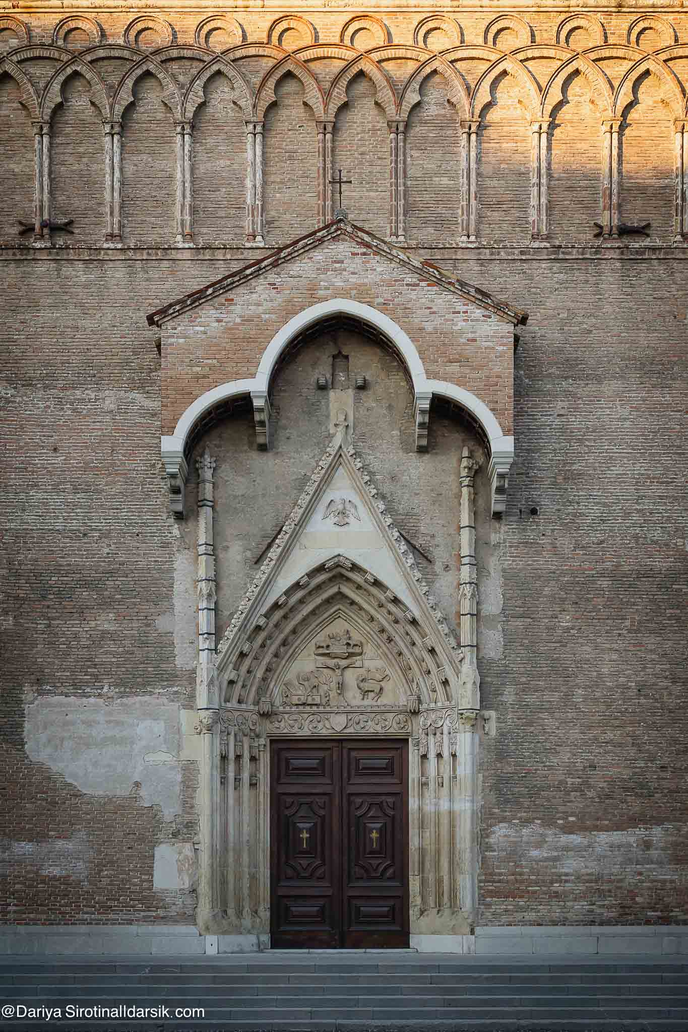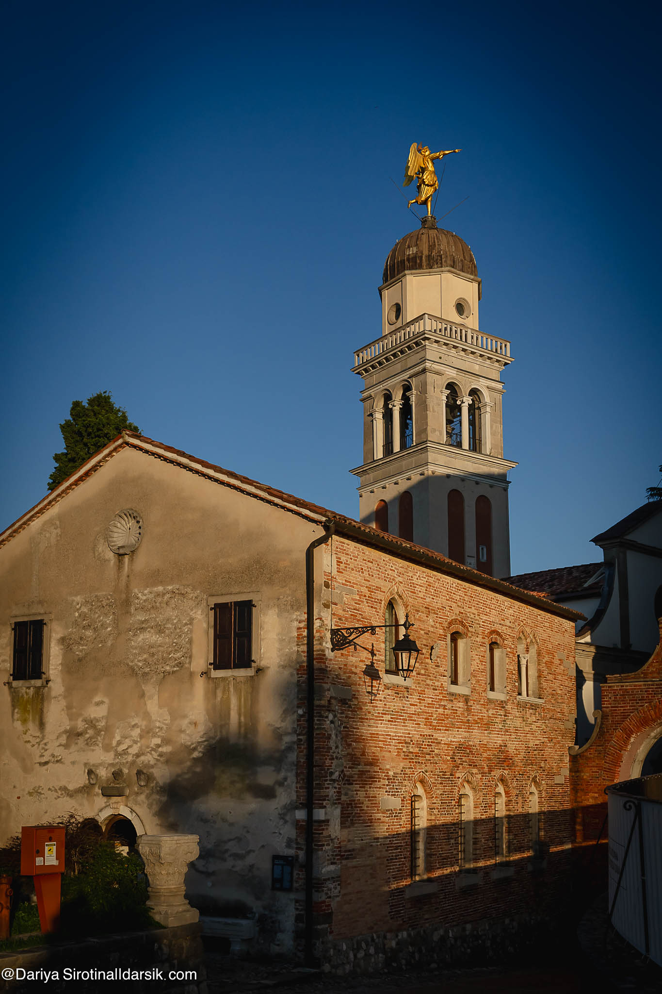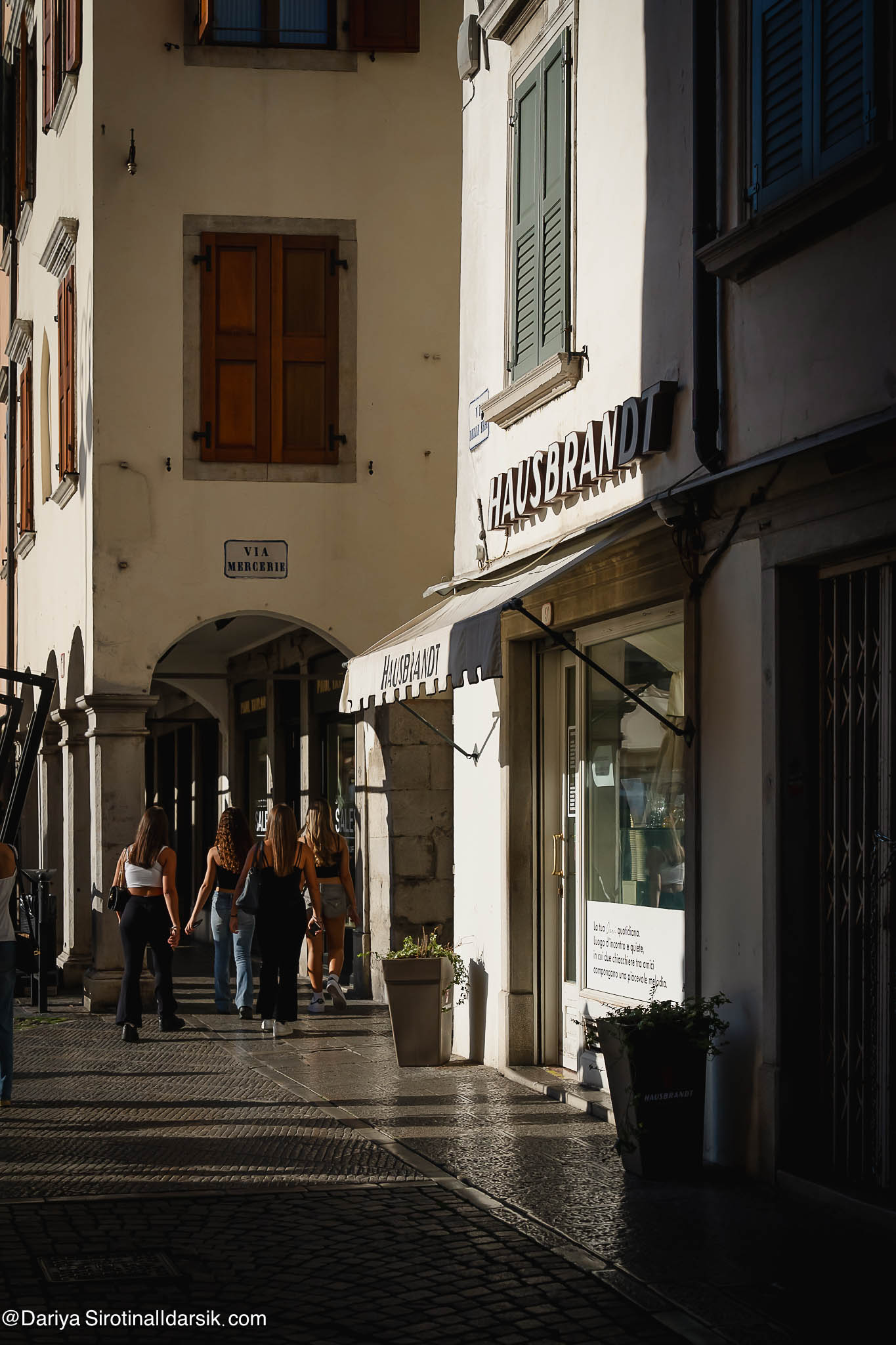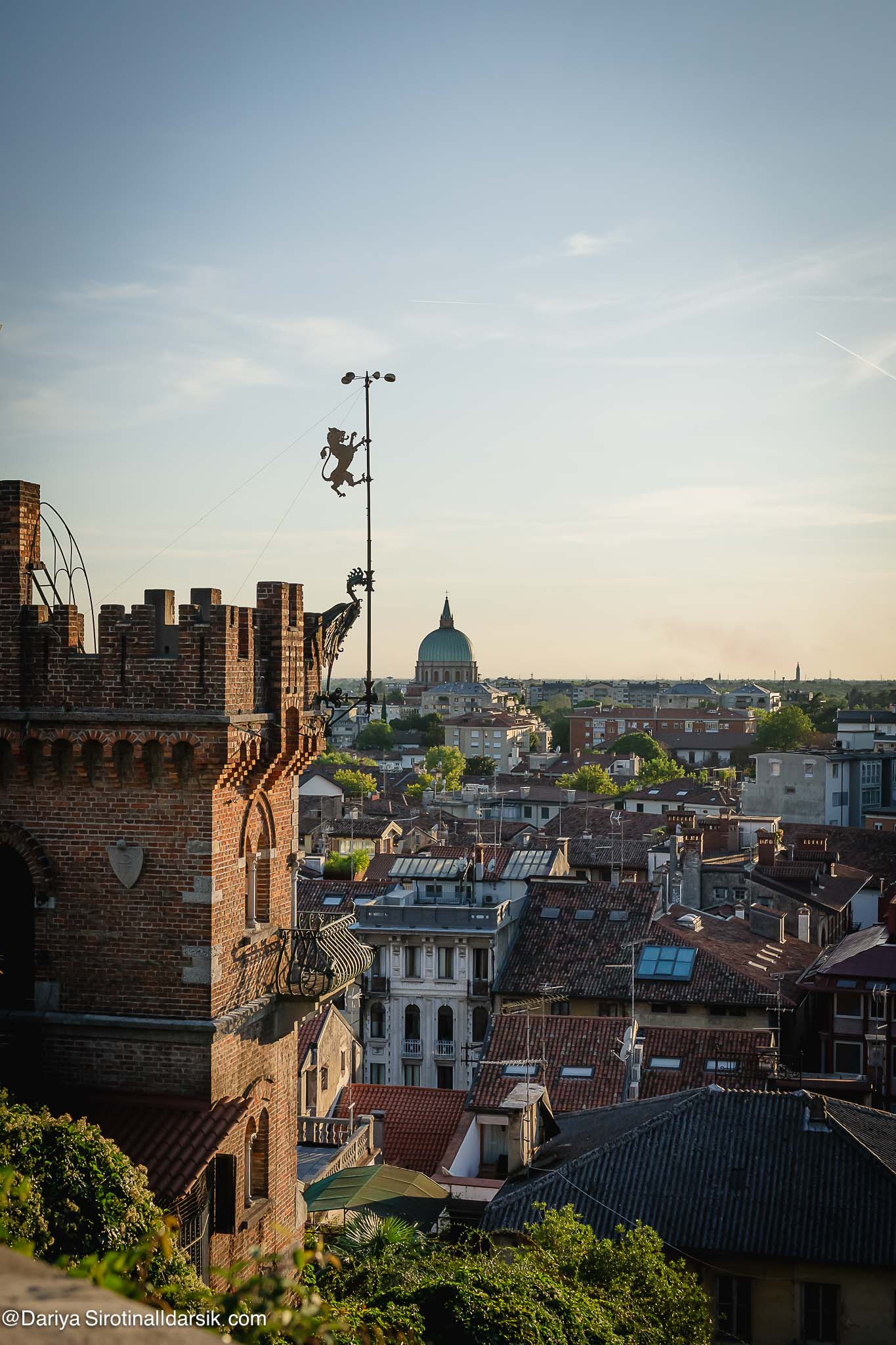 Удине — это моя новая большая любовь и город, в который я очень хочу вернуться для более обстоятельного знакомства. Удалось здесь провести всего несколько вечерних часов, но зато каких! Была суббота, весь город, кажется, гулял. Бурлящие улицы, заполненные террасы кафе, звон бокалов, сливающийся со звоном колокола, установленного на городском замке. Магический вечерний свет, венецианская архитектура, бесконечные портики и арки и ощущение новизны за каждым изгибом улицы. Почему архитектура венецианская? Да потому, что Удине был частью Венецианской республики с начала 15 до конца 18 века, поэтому как минимум центральная городская площадь, Piazza della Libertà, напомнит вам Венецию. От площади начинается подъем к замку. Не пожалейте времени и преодолейте его хотя бы ради прекрасных видов на сам город и Альпы! Спускаясь вниз, вы сможете вдоволь налюбоваться задним планом двух мускулистых мужских фигур, установленных на колокольне. Это мавры, как их тут принято называть, часовые автоматы. Один из них бьёт в колокол за несколько минут до наступления каждого часа, второй — ровно в ноль минут. То, что они движутся, привело лично меня в восторг!