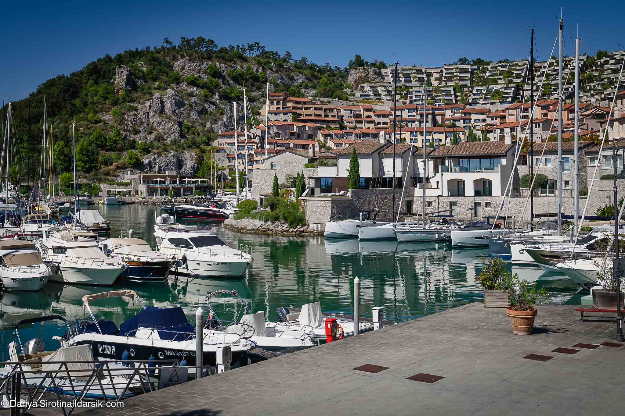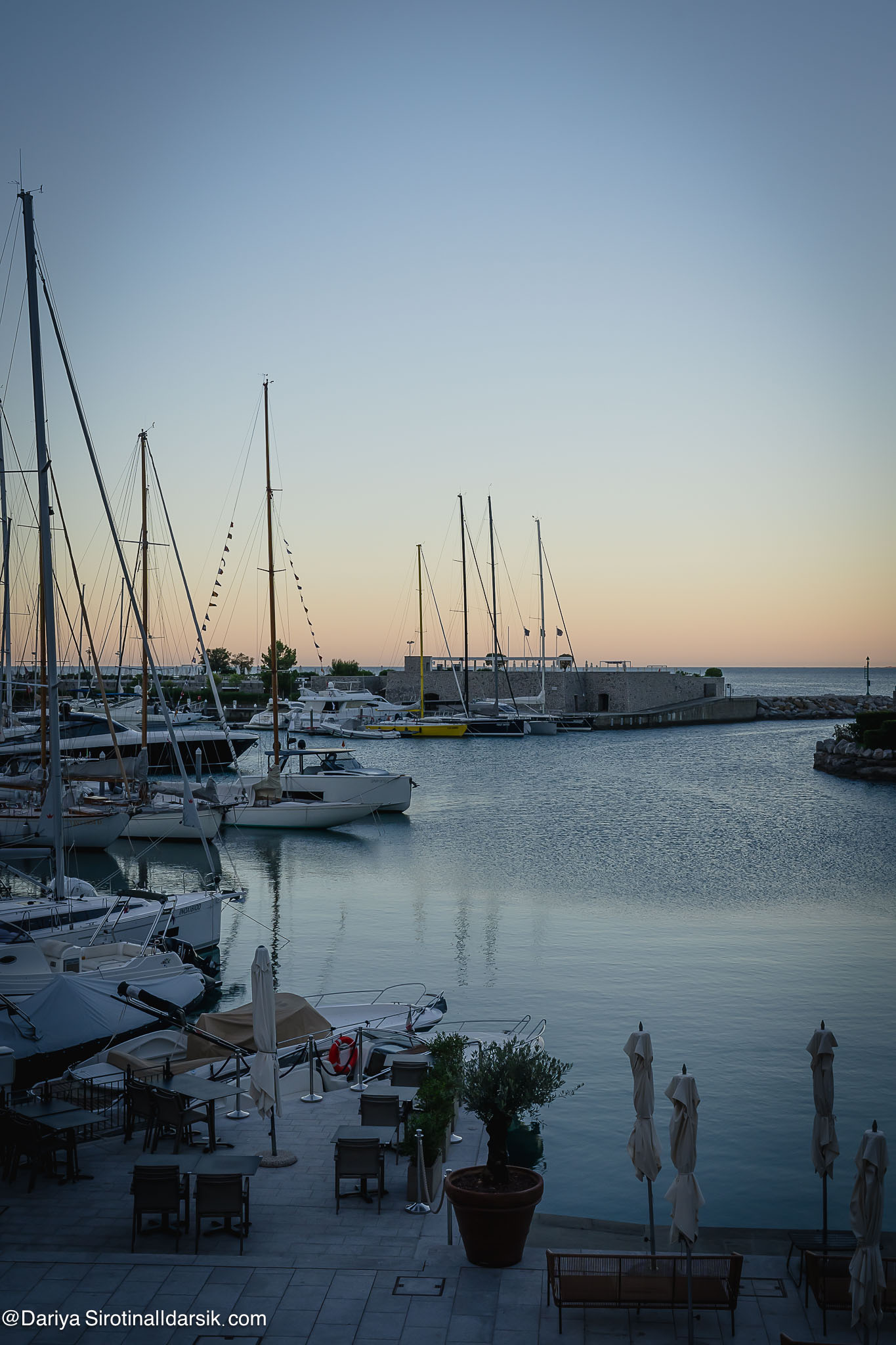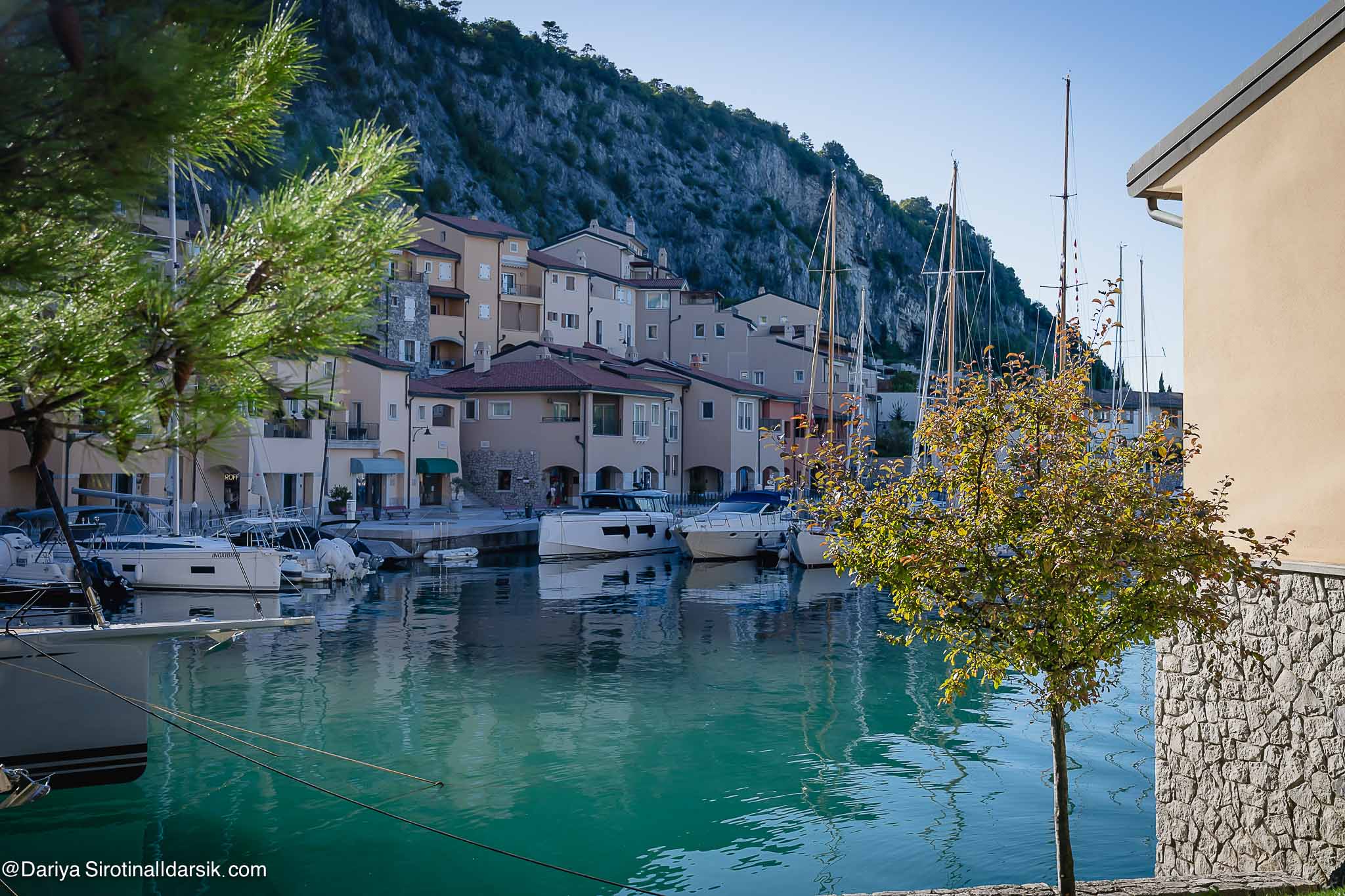 Порто Пикколо — это название современной яхтенной марины. Комплекс состоит собственно из марины и всех удобств, нужных яхтсменам, отеля и апартаментов Tivoli Porto Piccolo и курортной застройки, где также можно снять квартиру, но уже у частного хозяина. Другими словами, это будто бы маленький городок, выстроенный в виде амфитеатра, с пьяццей в центре, несколькими улочками, несколькими ресторанчиками, отелем и пляжной зоной. В сентябре этот городок был очень и очень тих.