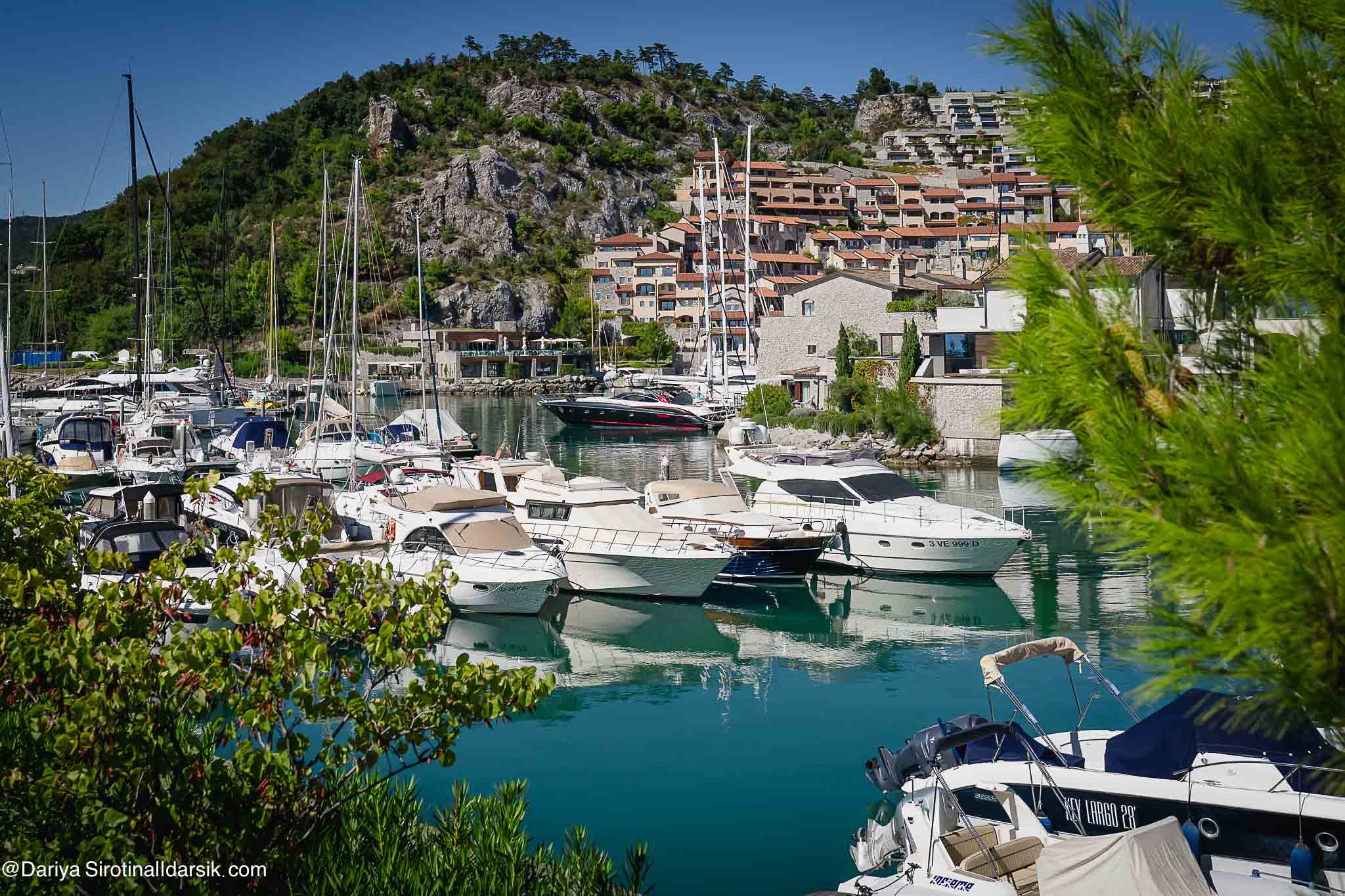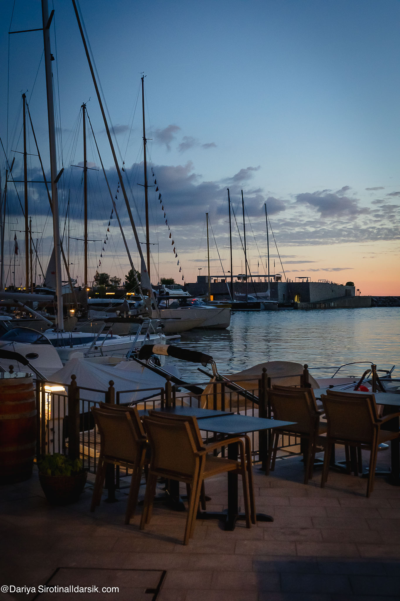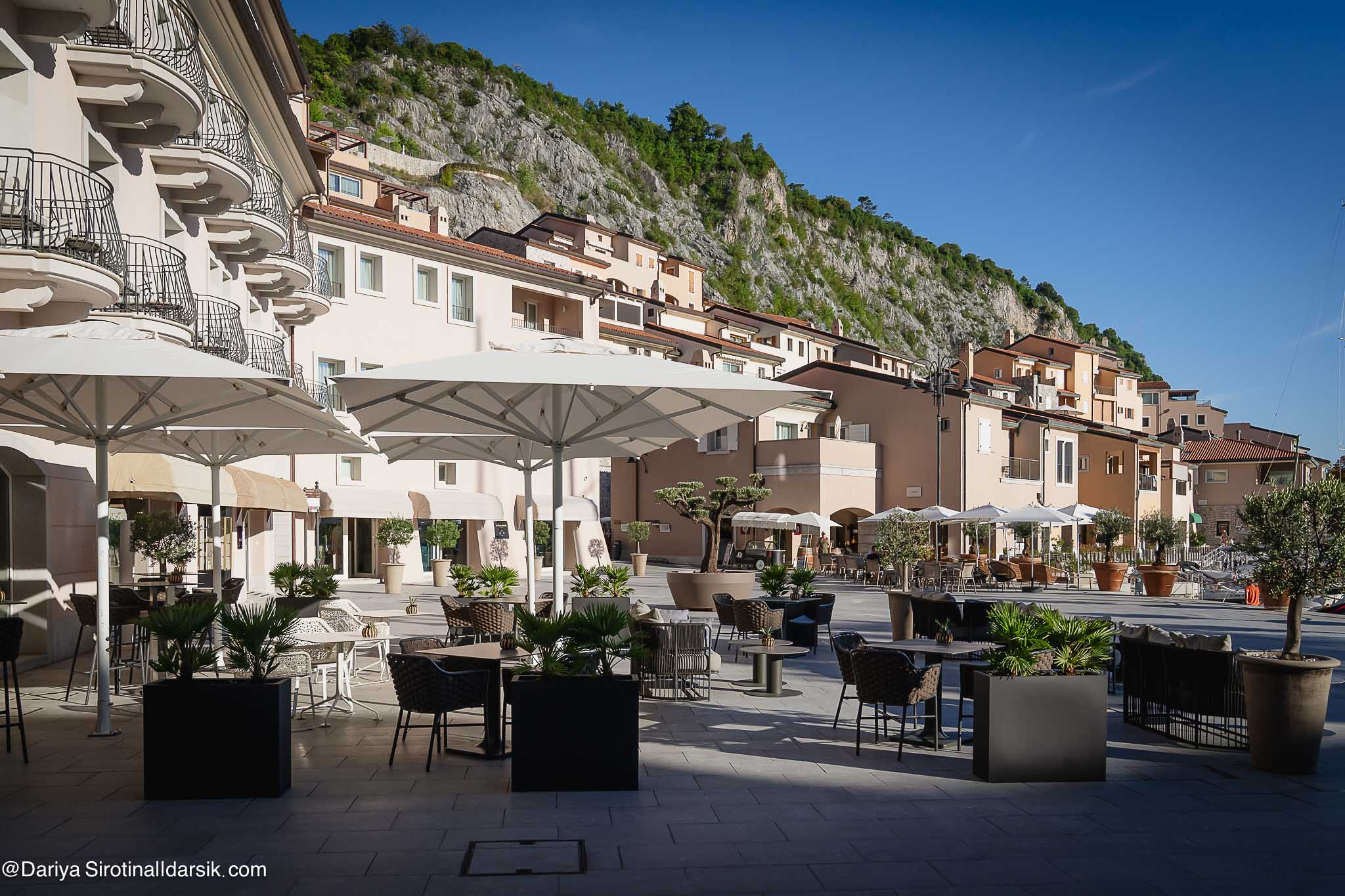 Порто Пикколо — это название современной яхтенной марины. Комплекс состоит собственно из марины и всех удобств, нужных яхтсменам, отеля и апартаментов Tivoli Porto Piccolo и курортной застройки, где также можно снять квартиру, но уже у частного хозяина. Другими словами, это будто бы маленький городок, выстроенный в виде амфитеатра, с пьяццей в центре, несколькими улочками, несколькими ресторанчиками, отелем и пляжной зоной. В сентябре этот городок был очень и очень тих.