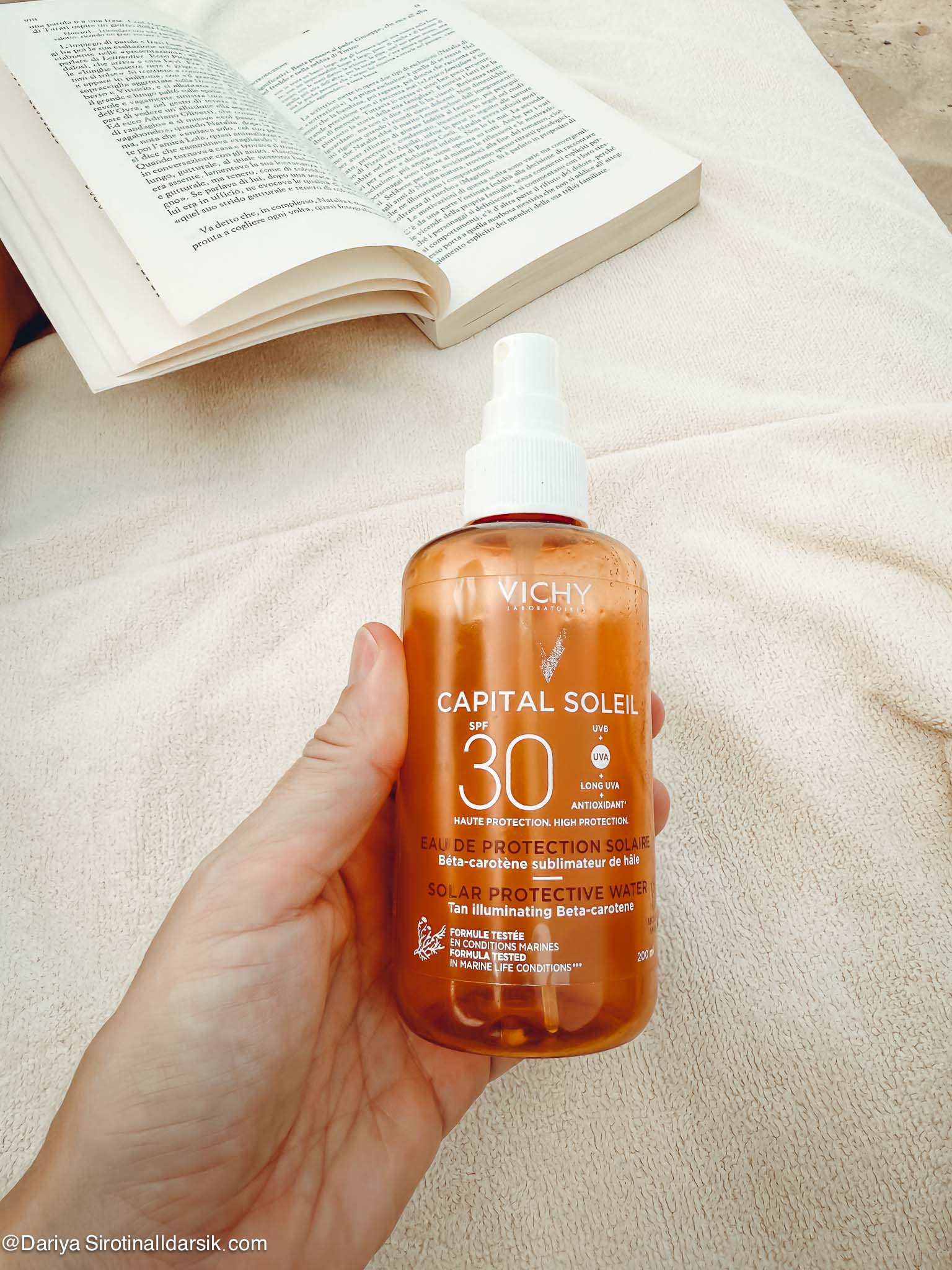 Тут тоже проверенные годами средства. Очень и очень неплохой SPF Garnier, который я наношу и на себя, и на мужа. Для города мне больше нравится подсвечивающий эффект d’Alba, а вот для пляжа удачен заявленный как ежедневный Garnier. Для тела — любимый формат легкого прозрачного лосьона Vichy Capital Soleil. Уважаю оба, и тот, что с SPF 50, и тот, что с SPF 30. Пользуюсь и тем, и другим много лет. Мужу — детский спрей Garnier. Также о нем писала.