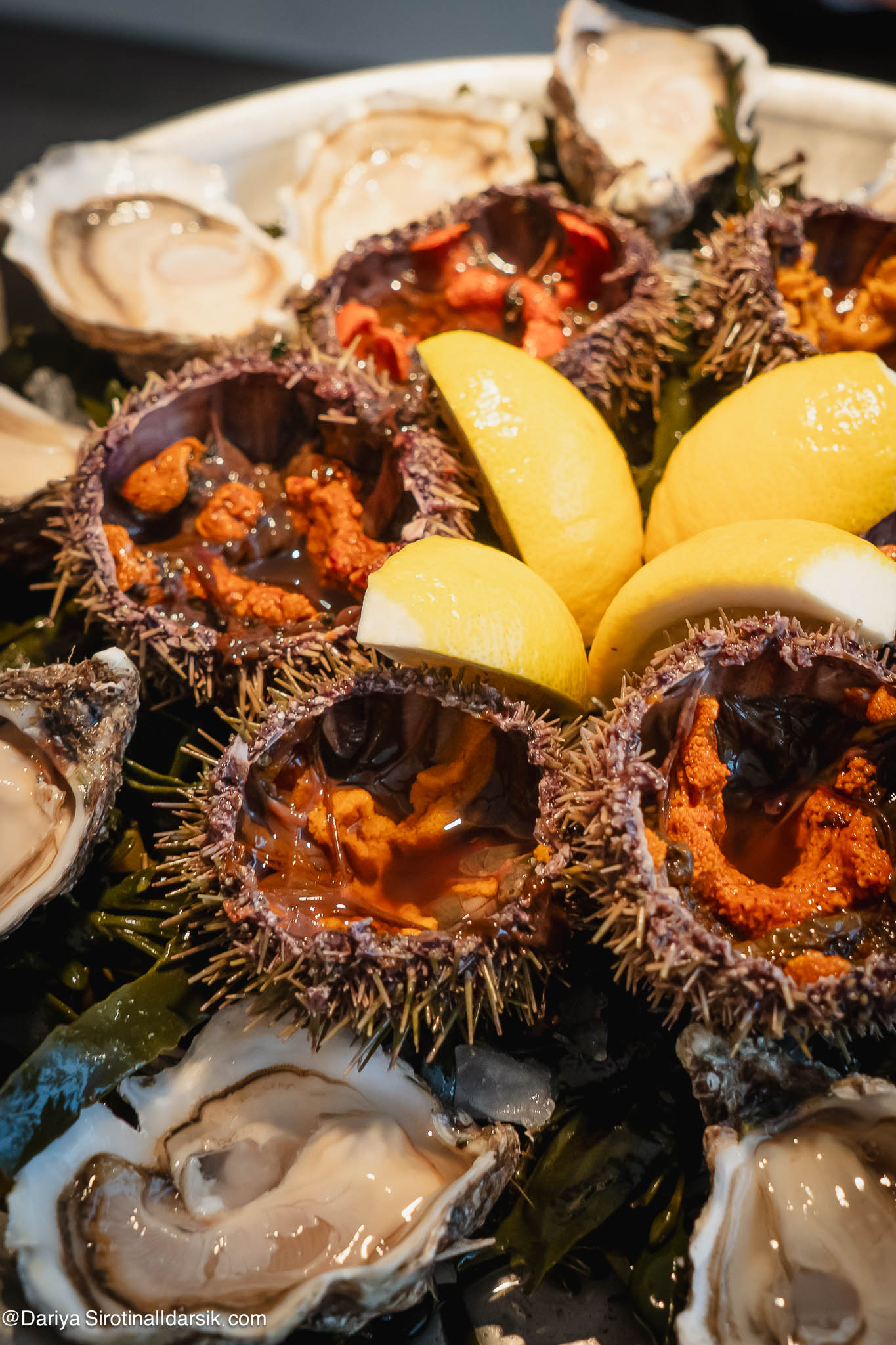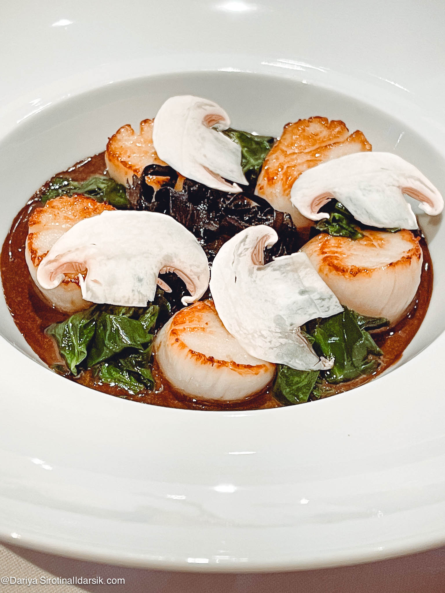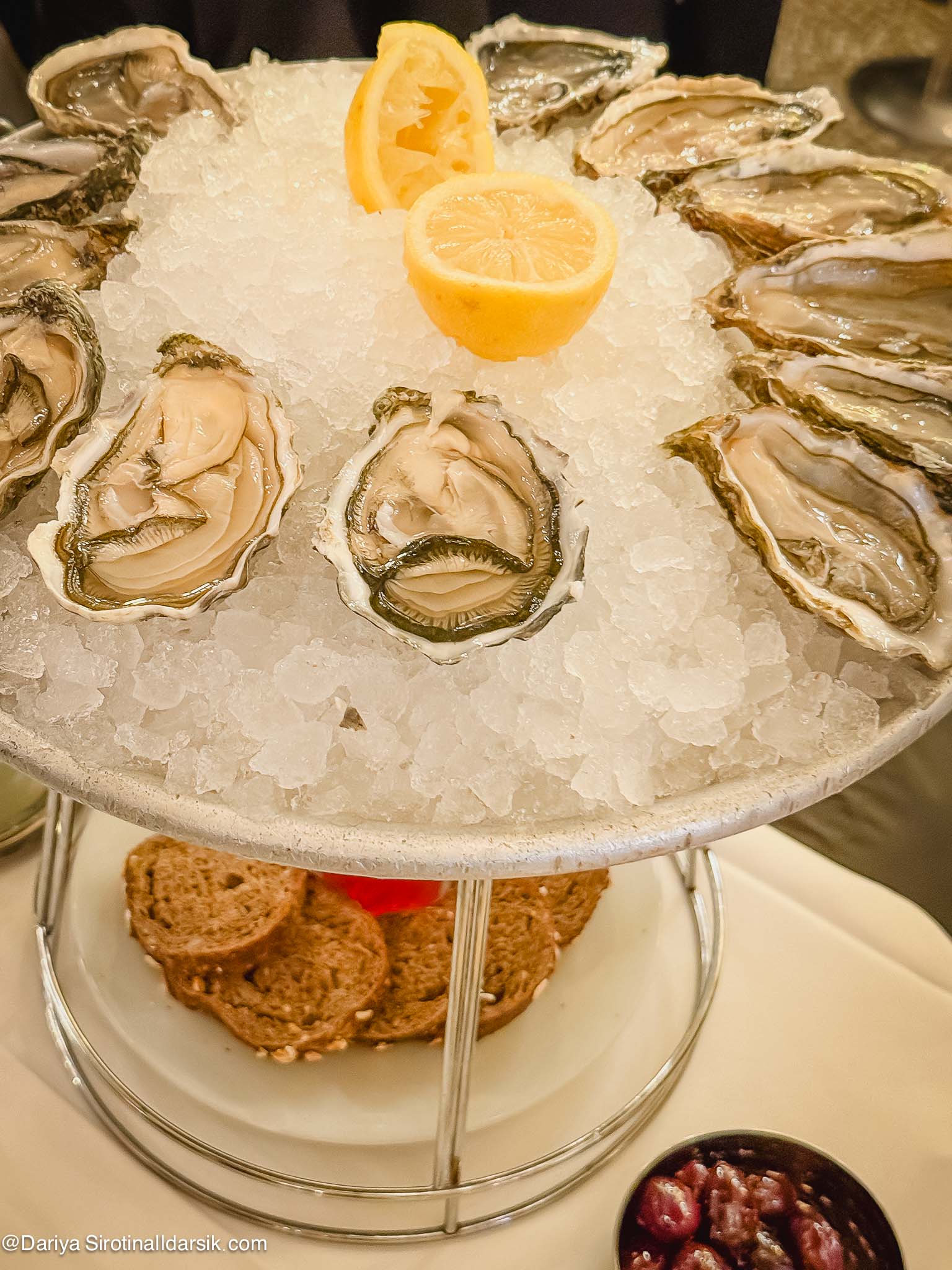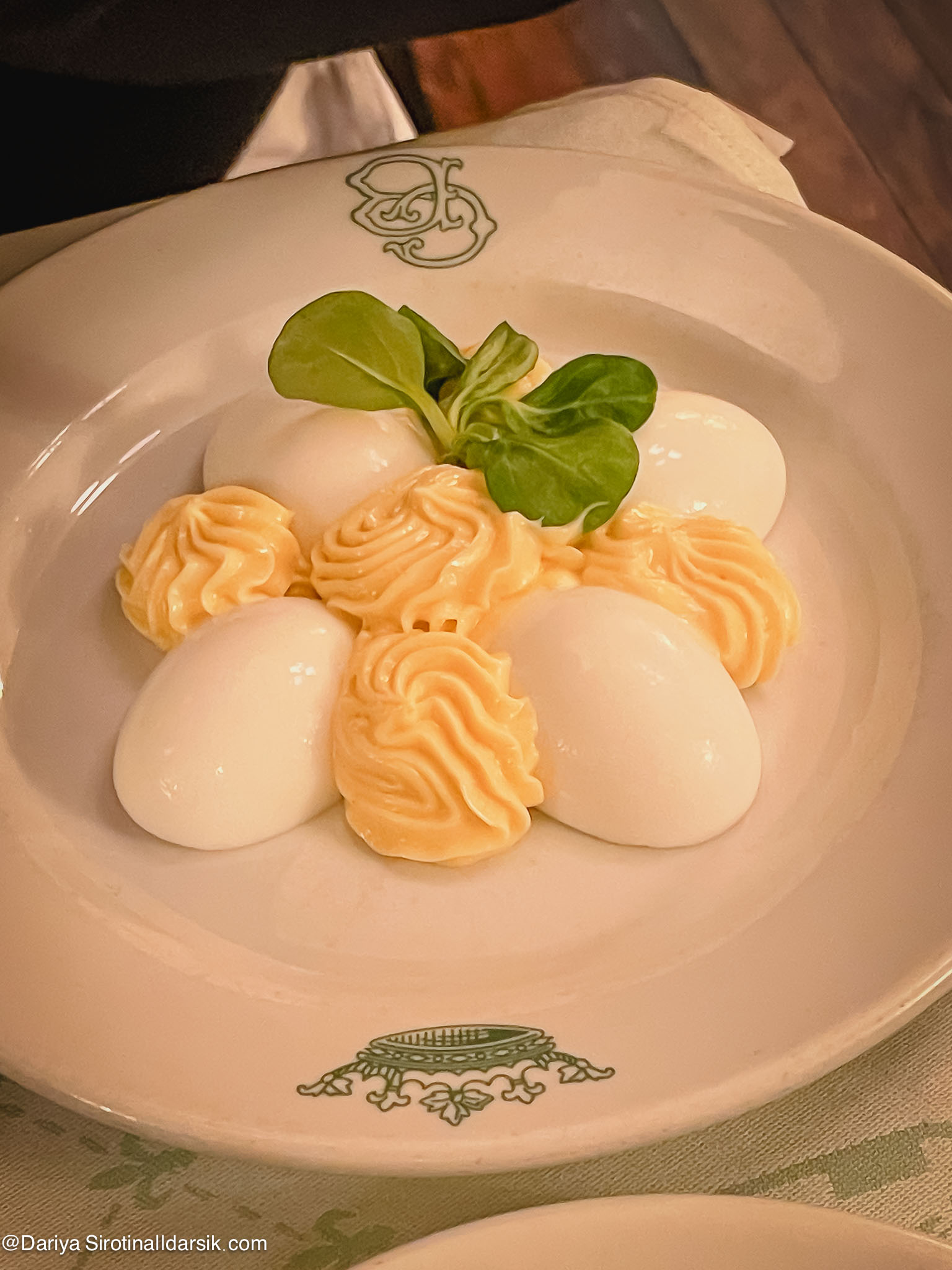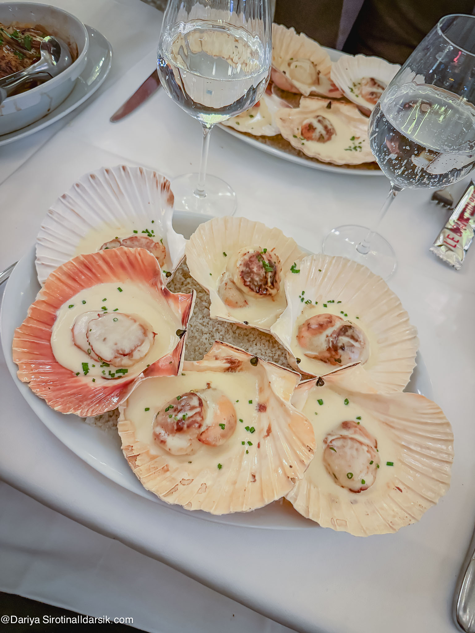 С удивлением узнала в этом ресторане о существовании блюда под названием Oeuf Christian Dior, отсылающего нас к одному, думается, прекрасном ужину в Довиле с участием Кристиана Диора, Ива Сен-Лорана и Пьера Берже. Сваренное всмятку яйцо с желе из крепкого бульона на основе курицы и парижского окорока — таким был один из любимых рецептов Кристиана Диора. Пьер Берже — каков гурман! — предложил добавить к нему ну грамм 30 прекрасной осетровой икры. Oeuf Christian Dior — культовое блюдо исторического ресторана Prunier на авеню Виктора Гюго в Париже. Prunier — один из старейших икорных домов Франции, акционером которого был Пьер Берже. В 2021 году дом сменил владельцев (сам Берже умер еще в 2017 году), за кухню ресторана теперь отвечает обладатель трех звезд Мишлен Янник Аллено. Восхитительный зал с отделкой в стиле ар деко, потрясающий выбор икры, очень тонкая, изысканная кухня! В субботу вечером мы были единственными иностранцами в зале. Сюда можно прийти и на ужин, и просто на устрицы и бокал вина или икру и шампанское.