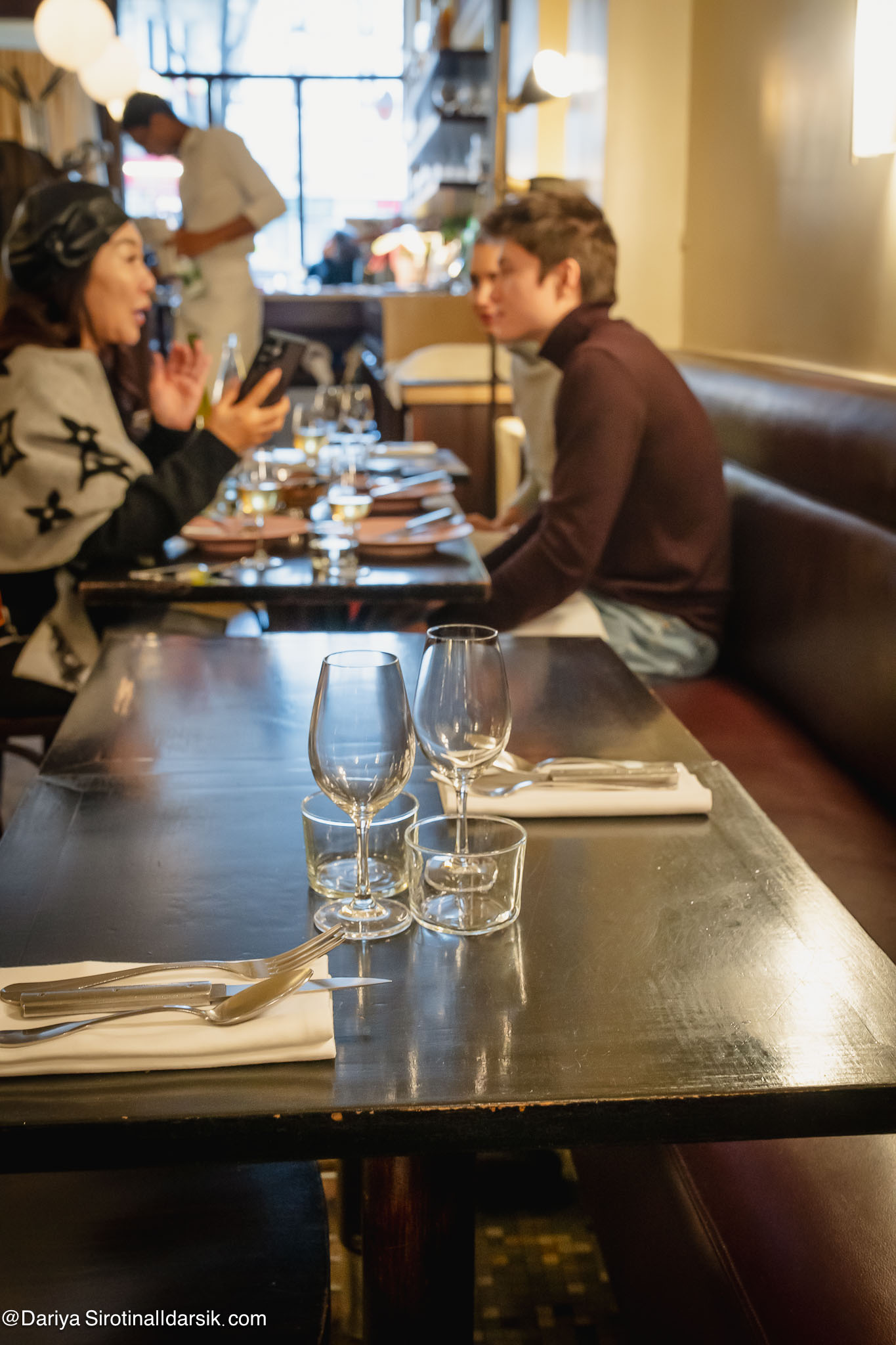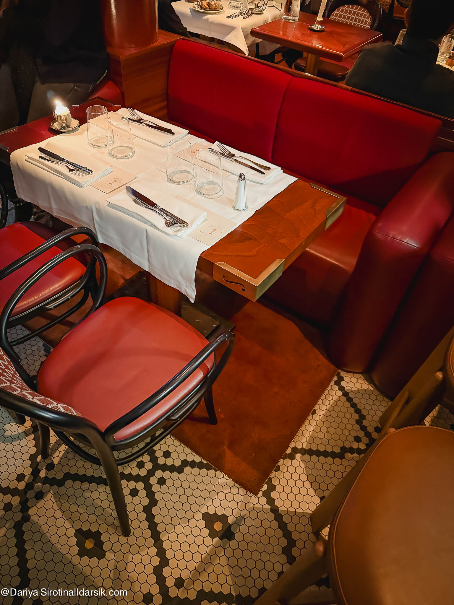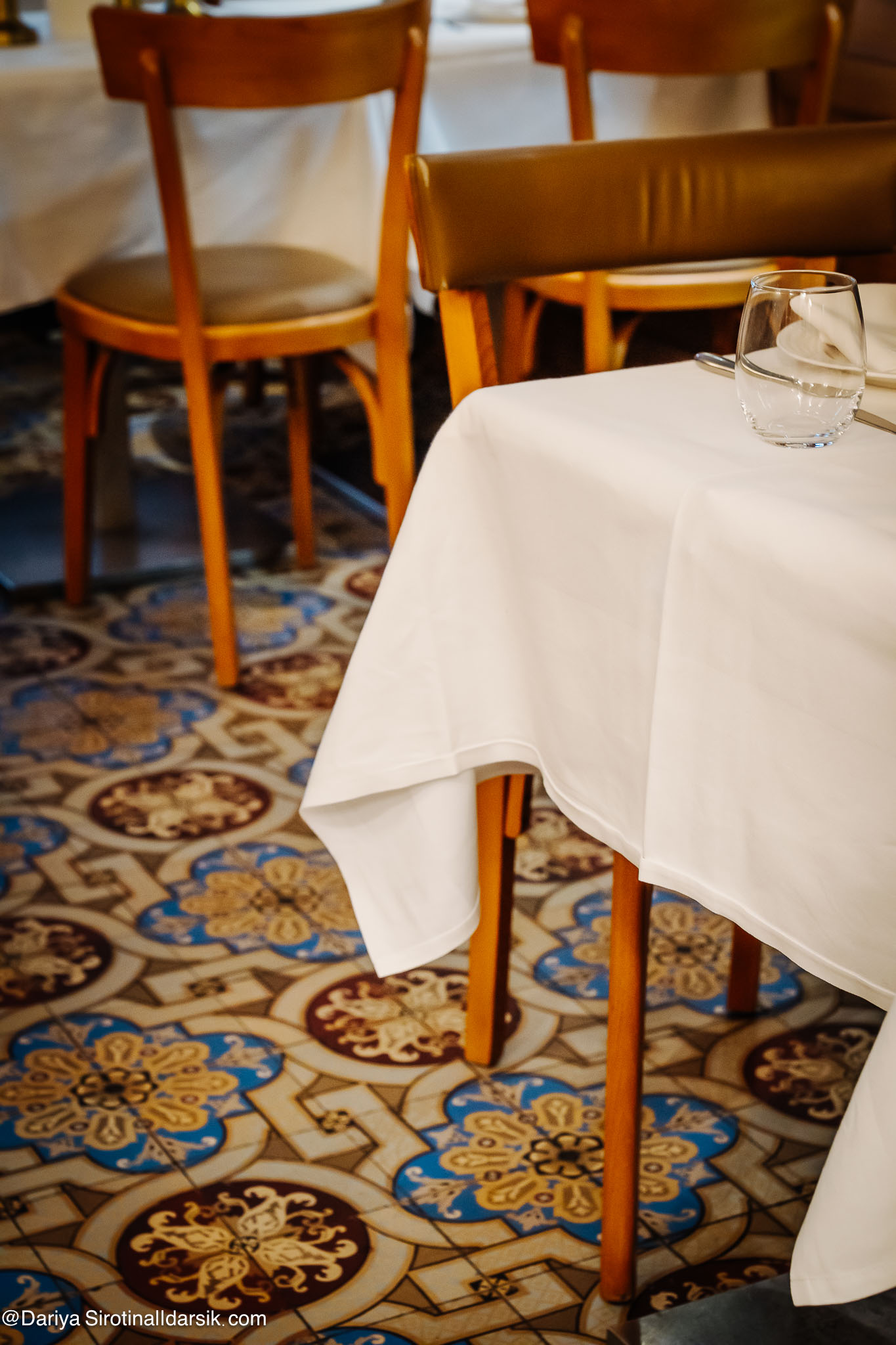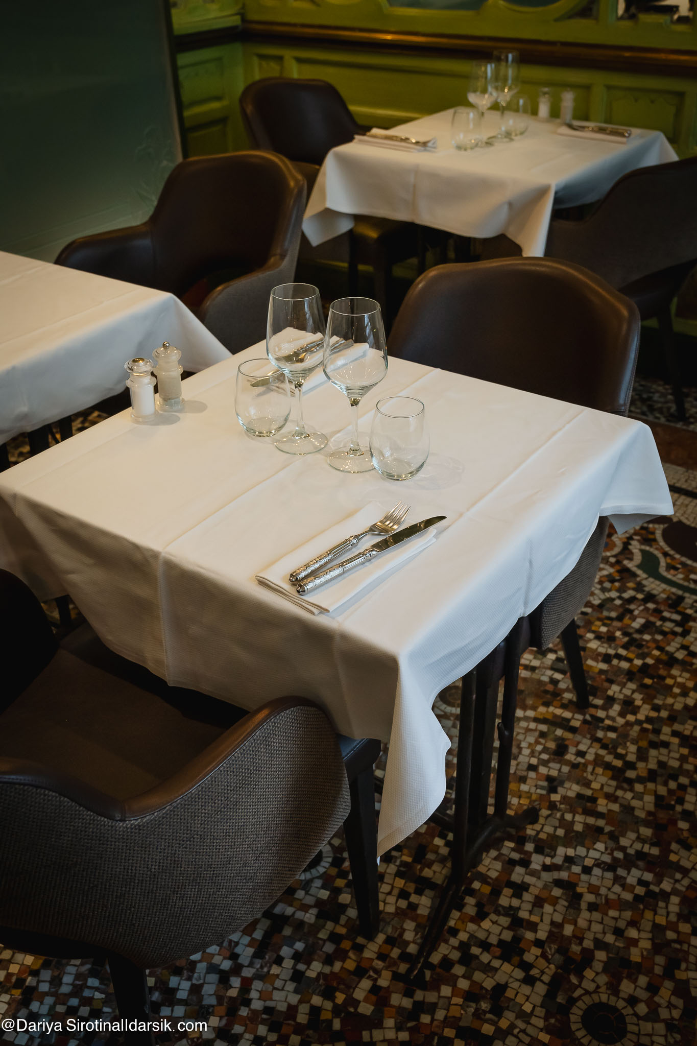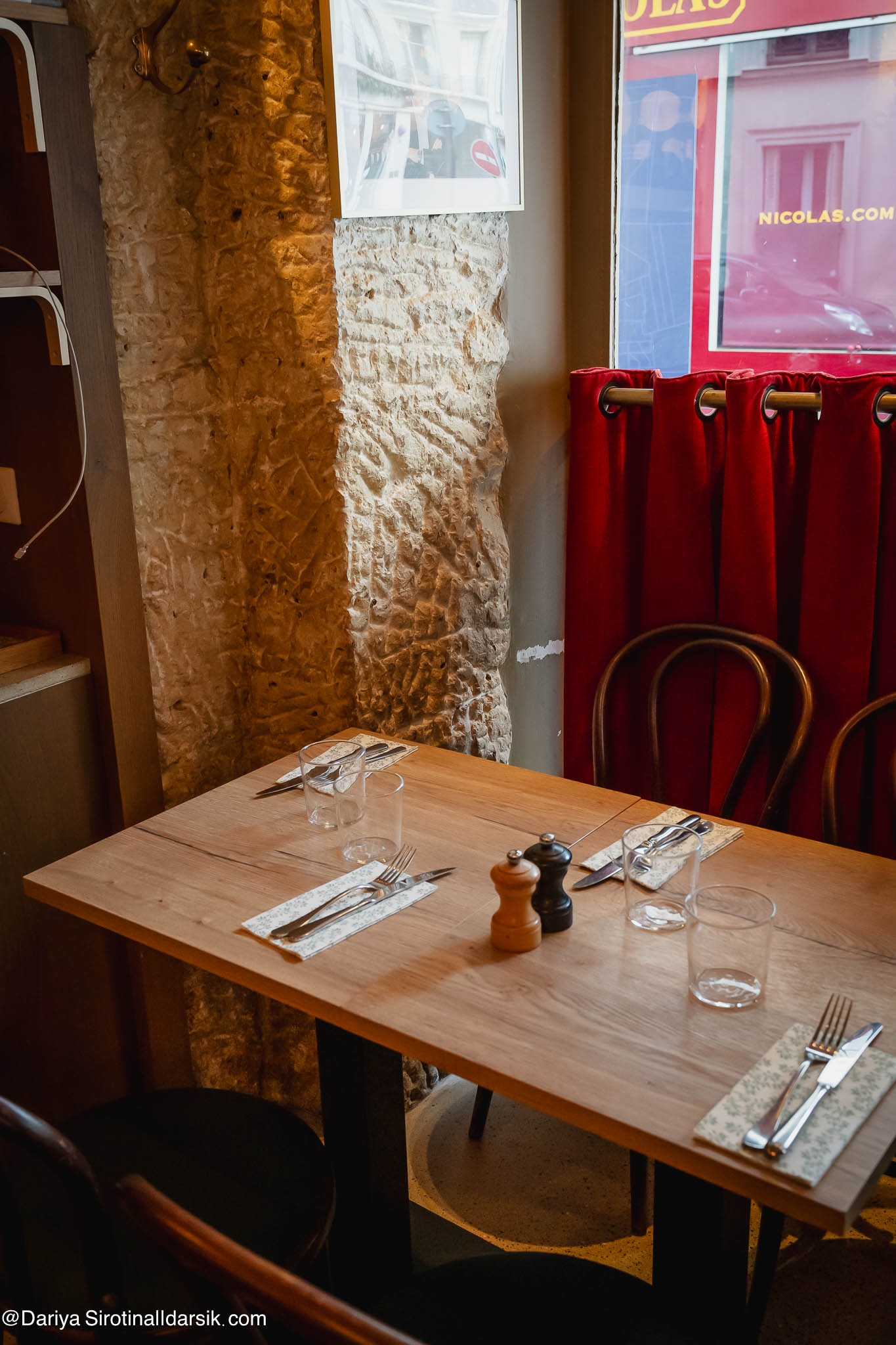 Париж — это теснота столиков и верхняя одежда, которую нужно запихнуть куда-то под себя или пристроить за спинку дивана, ведь гардеробы есть только в дорогих ресторанах. Клиенты, которые имеют деньги, но не имеют желания произвести впечатление. Отсутствие рассказов о бабушке шефа и десятка ножей на выбор. И даже меню для мадам без цен — история не про пафос, а про традиции.