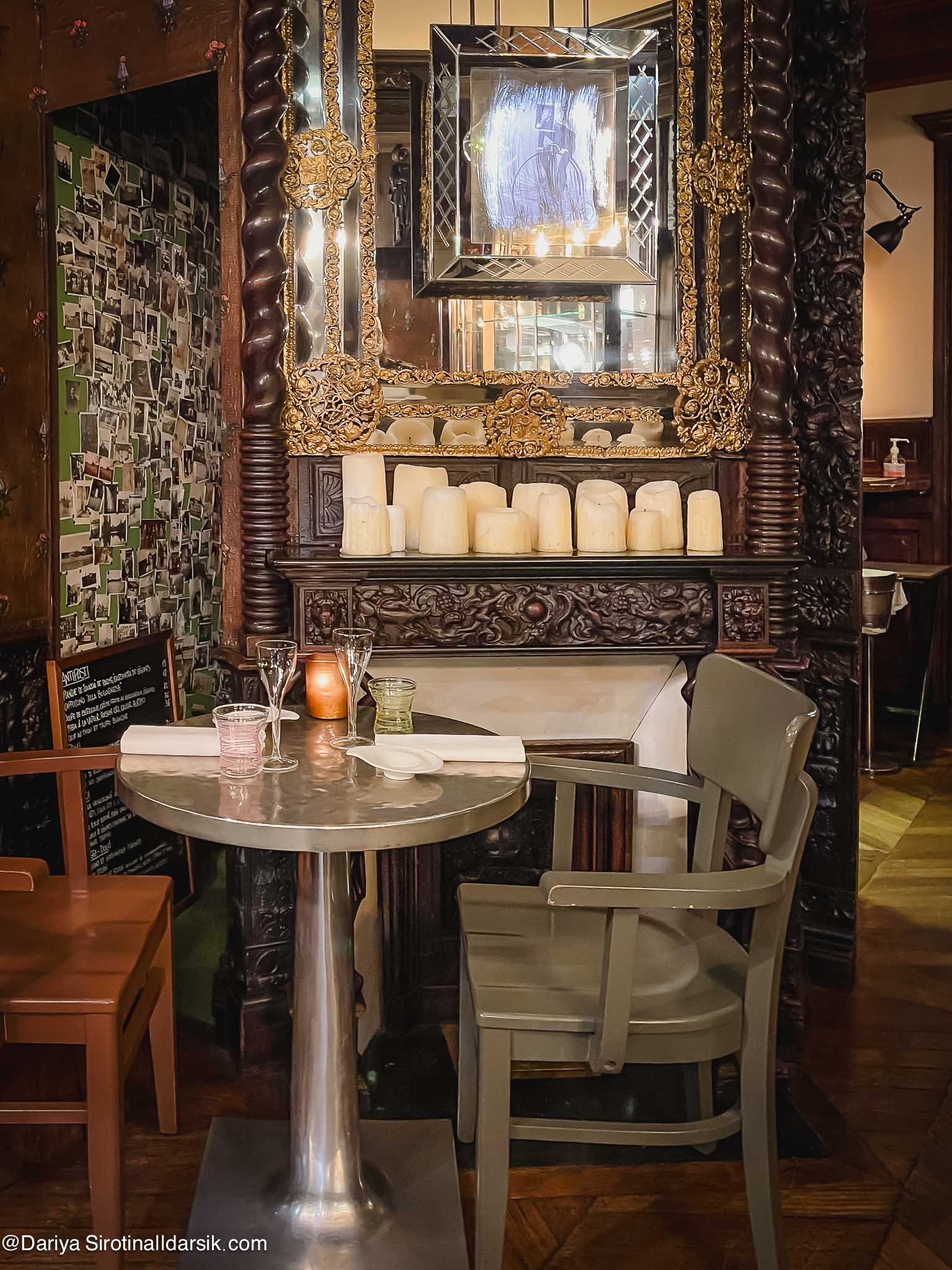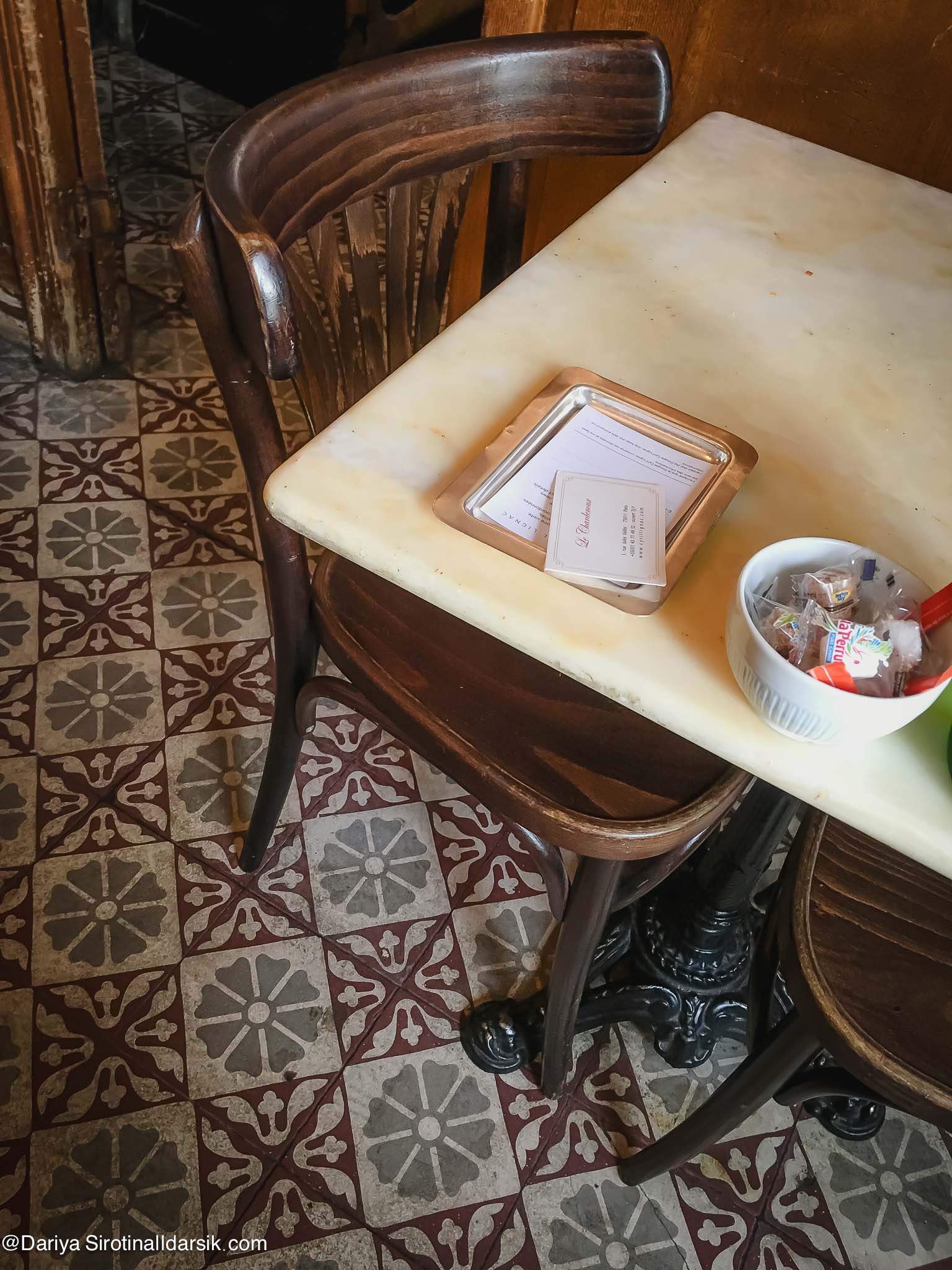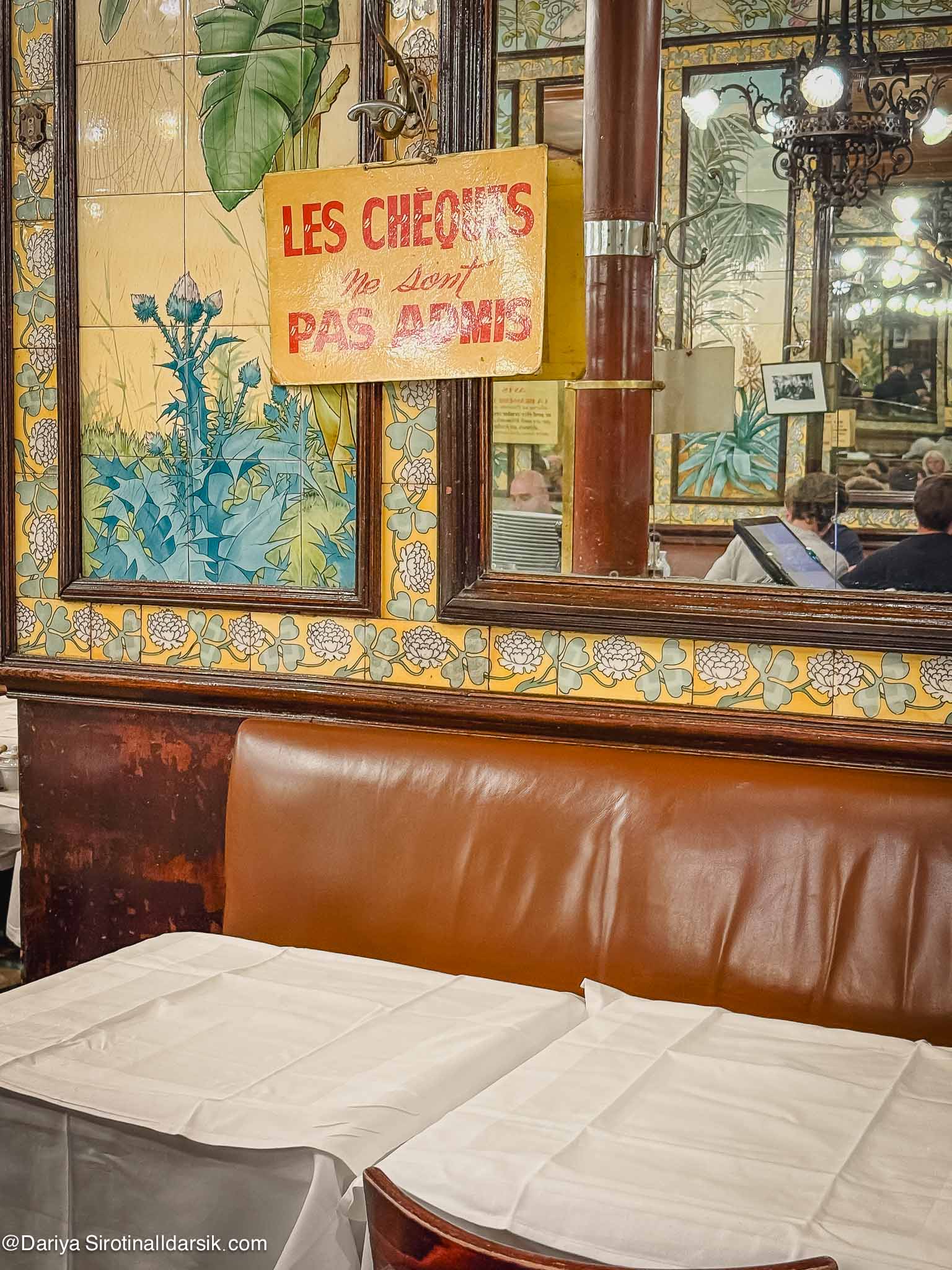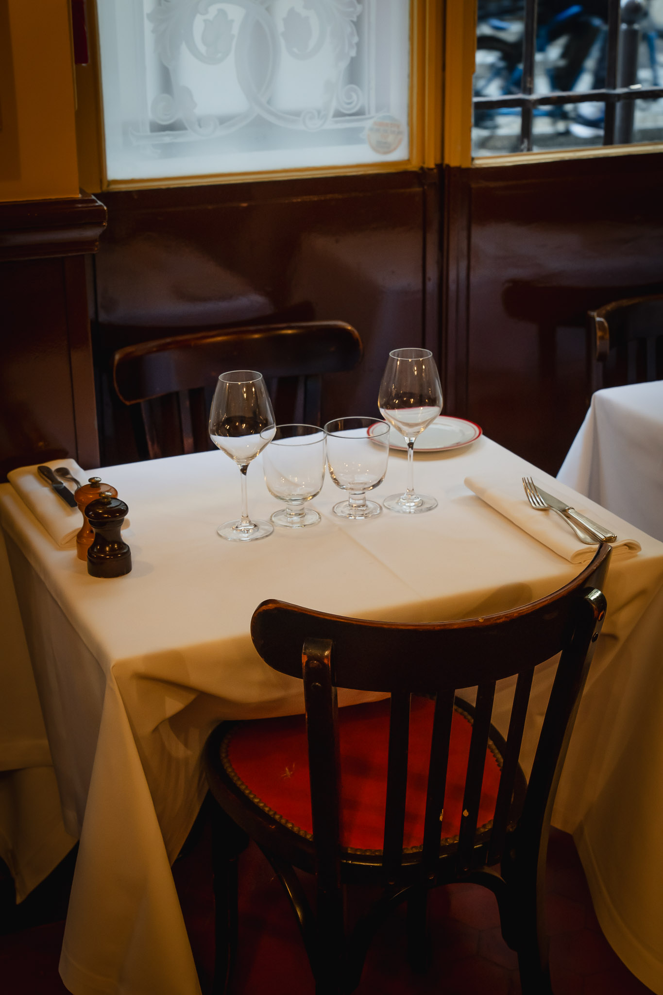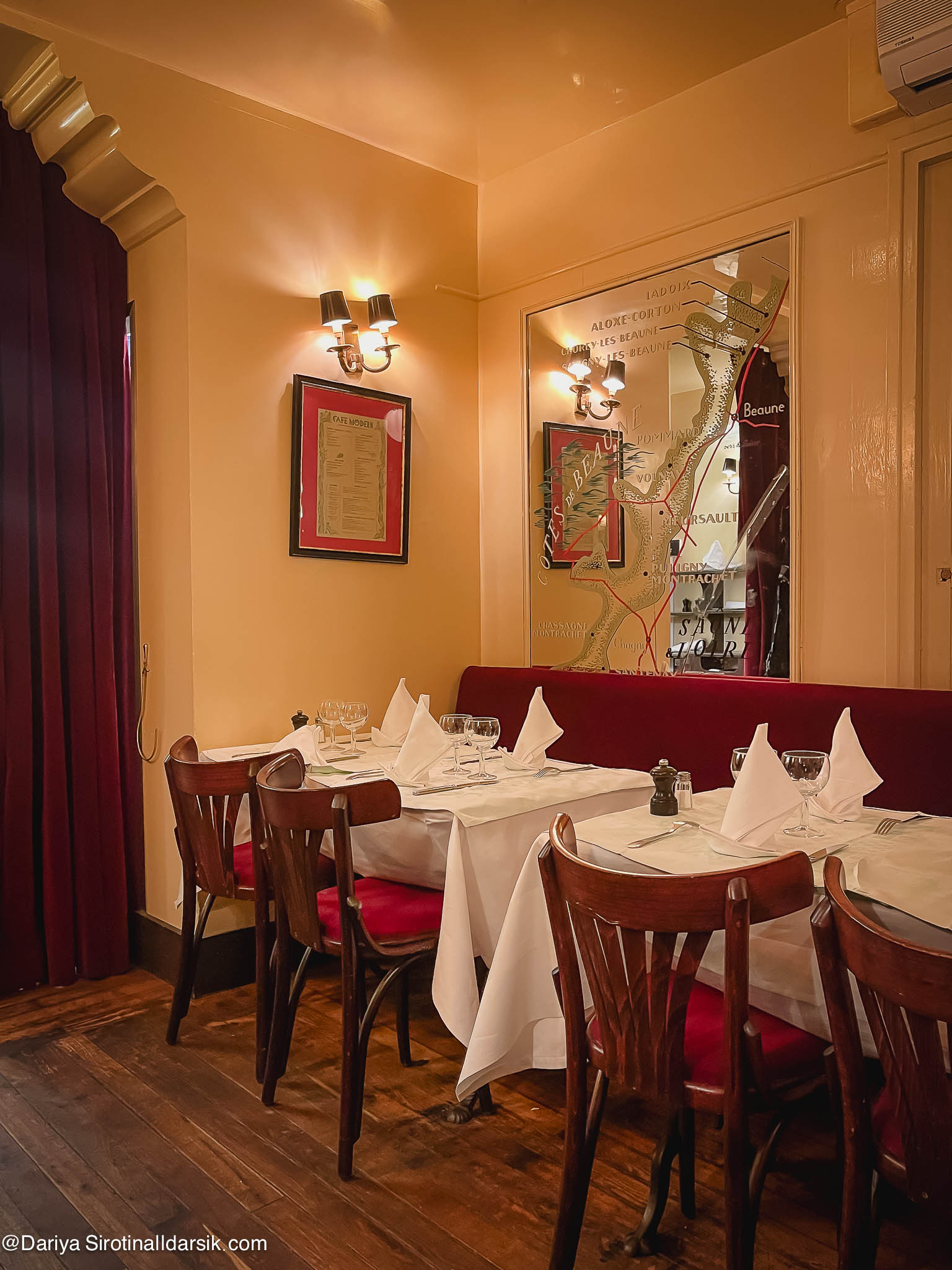 Париж — это теснота столиков и верхняя одежда, которую нужно запихнуть куда-то под себя или пристроить за спинку дивана, ведь гардеробы есть только в дорогих ресторанах. Клиенты, которые имеют деньги, но не имеют желания произвести впечатление. Отсутствие рассказов о бабушке шефа и десятка ножей на выбор. И даже меню для мадам без цен — история не про пафос, а про традиции.