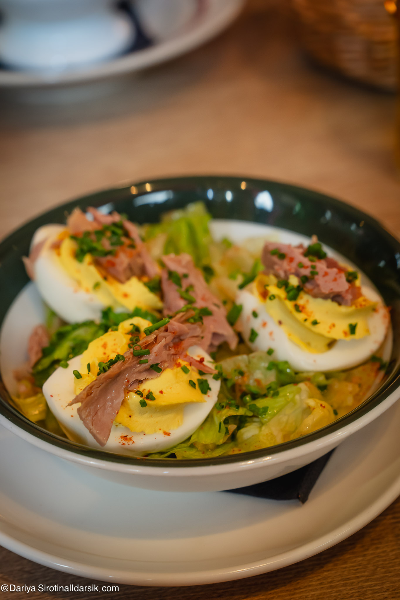 Классическая брассери на новый лад в двух шагах от Опера Бастий, прямо напротив Boffinger. Я выше упоминала о существовании мирового чемпионата по яйцам «Мимоза». Так вот о его существовании я узнала именно в этой брассери. Более того, именно местные яйца — самые мимозистые из всех! Я, конечно, не могла их не заказать. И да, рагацци, они действительно эталонные. Во-первых, отлично сварены — блестящий белок и блестящий желток. Во-вторых, соус нежный, но плотный. И не падает с половинки яйца, когда пытаешься ее разрезать. В-третьих, яйца сопровождены очень вкусным салатом. Все остальное тоже на высоте: устрицы самые устричные, вино ледяное, рыба со шпинатом в сливочном соусе нежна.
