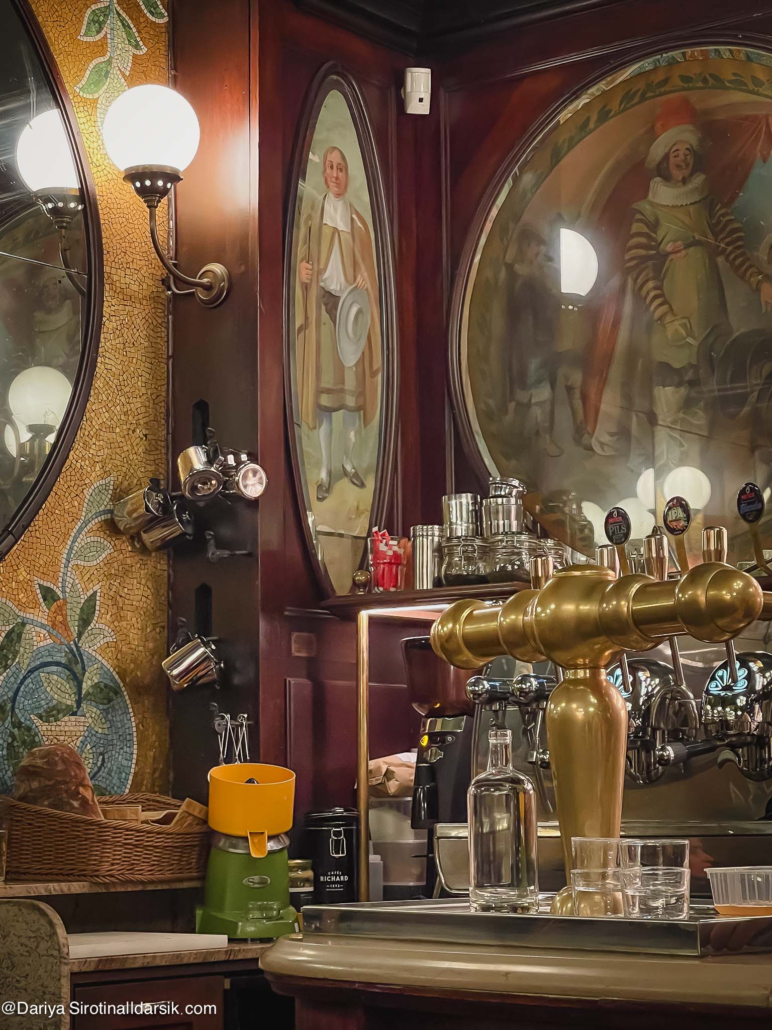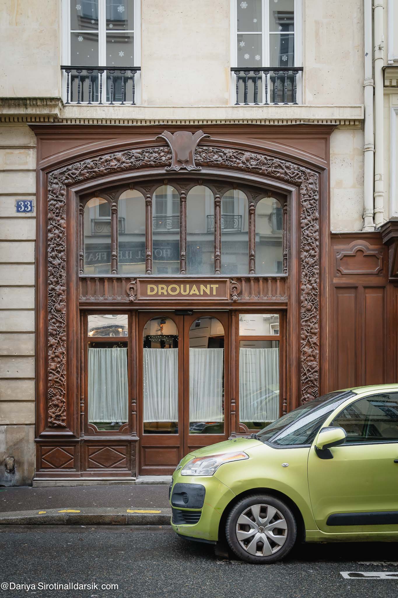 В огромном количестве парижских мест ощутим дух былых, более роскошных и прожитых в меньшей спешке времён. Он чувствуется в ирисах, выписанных в духе ар-нуво в Bouillon Racine, в щербатой плитке и роскошных потолках Le Chardenoux, в дивных интерьерах Le Cyrano, в сценках из жизни цирка в Clown Bar. История живет и в Caffè Stern, занимающем место бывшей типографии, и даже в сапожной мастерской La Cordonnerie, ставшей рестораном. В Париже сохраняют патину и затёртые полы, не стесняются видавших видов приборов. Здесь никто не стремится к стерильной реставрации и с уважением относится к прошлому.