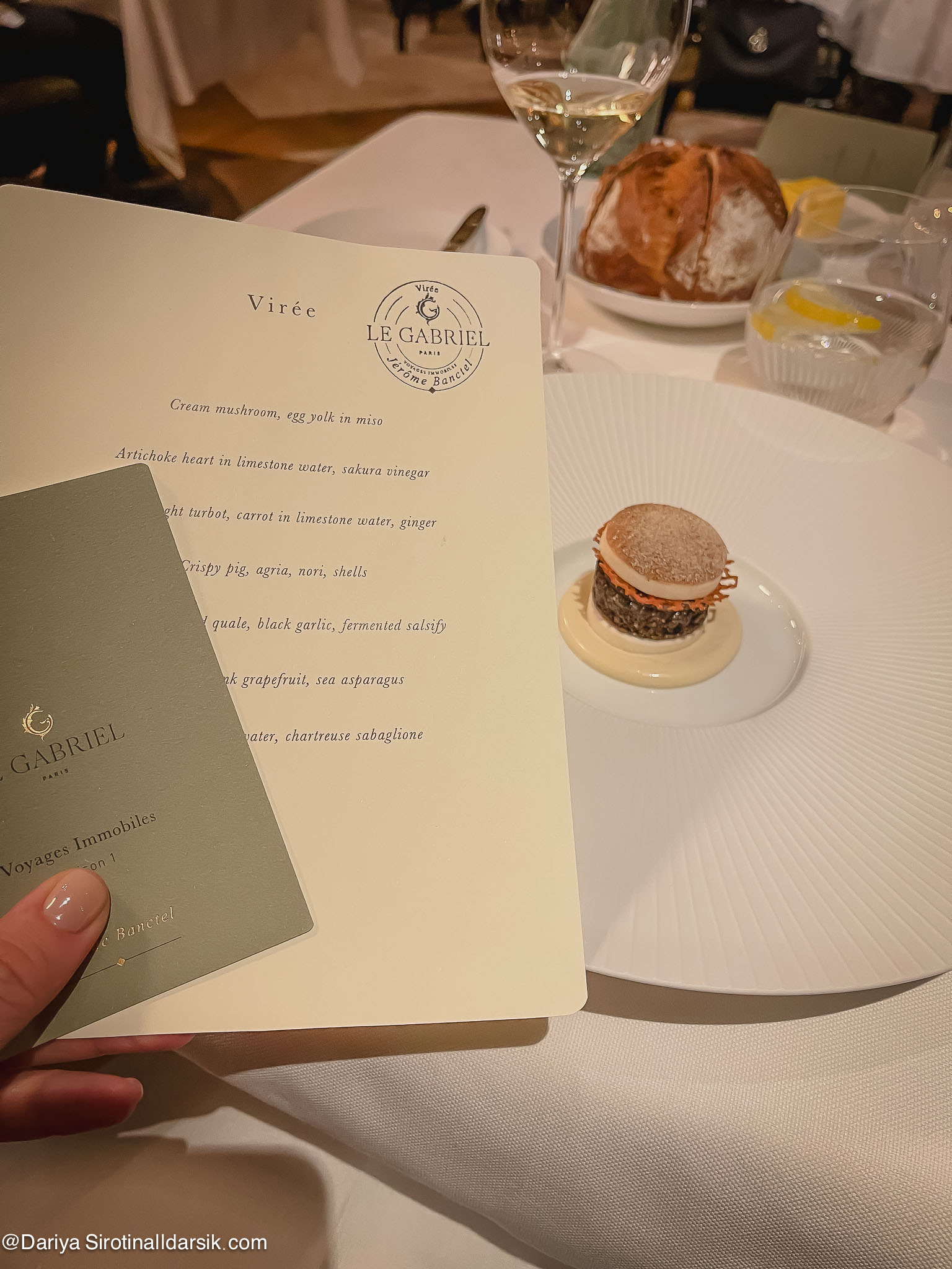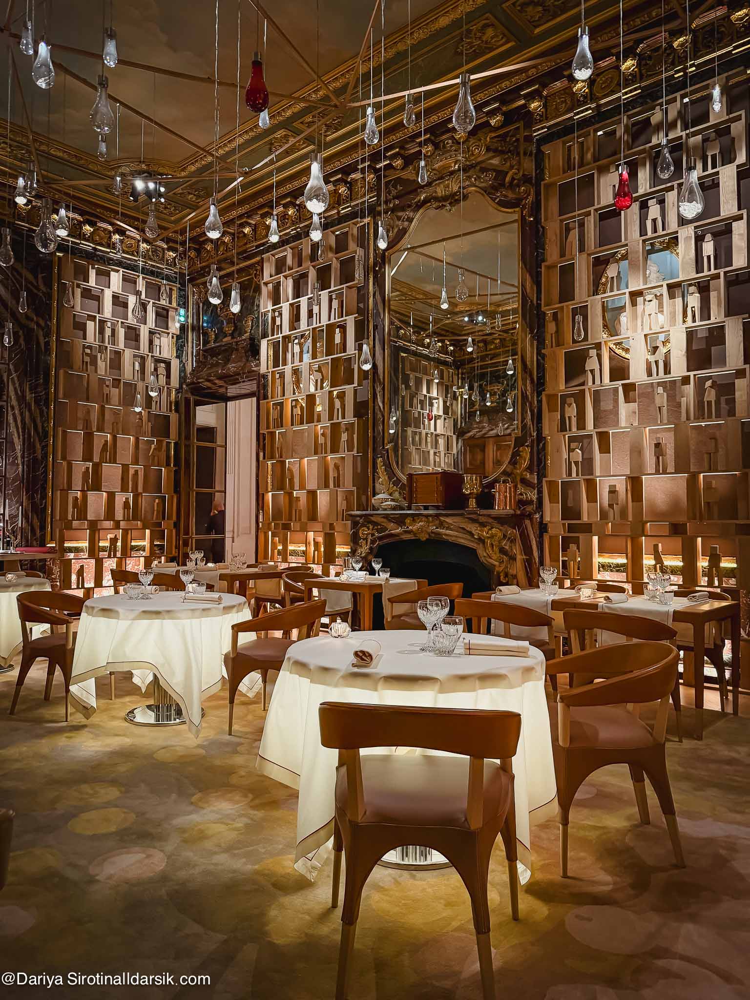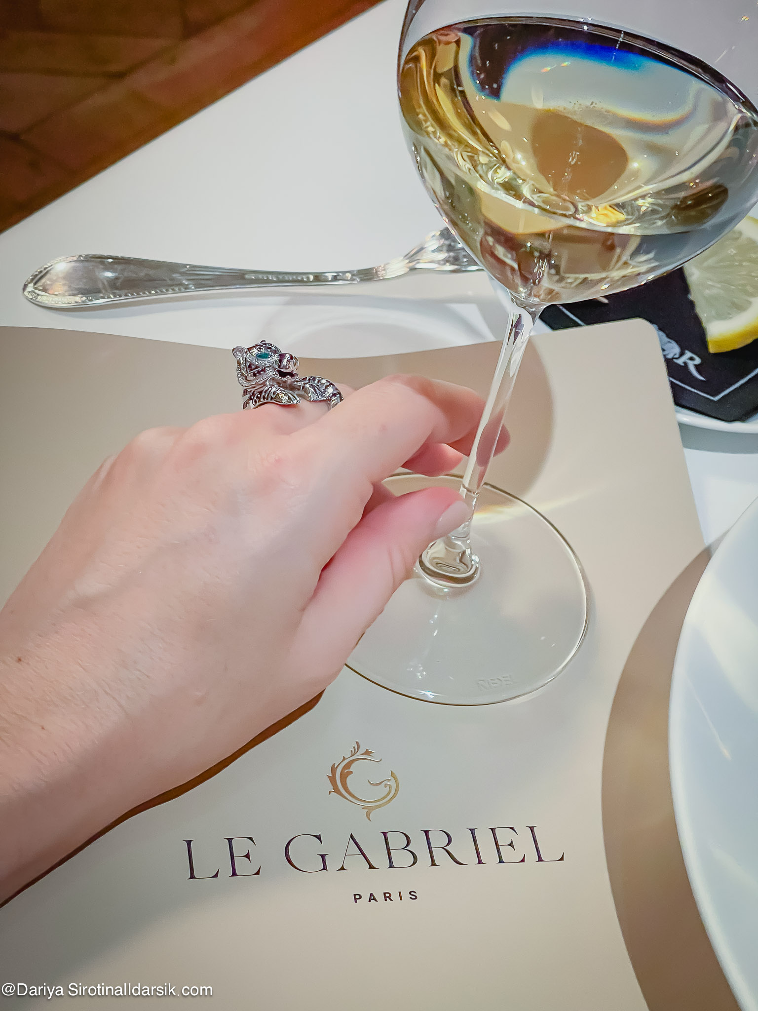 Относительно новый — работает второй год — ресторан великого Алена Дюкасса, сделанный вместе с Maison Baccarat. Скажу честно, я идти не хотела, но муж и газета Le Figaro очень настаивали. Я побаиваюсь заведений таких медийных шефов как Дюкасс, потому что небезосновательно полагаю, что их слава зачастую привлекает публику, заинтересованную не столько в гастрономии, сколько в погоне за чек-ином в соцсетях. Однако, пока этого не произошло.