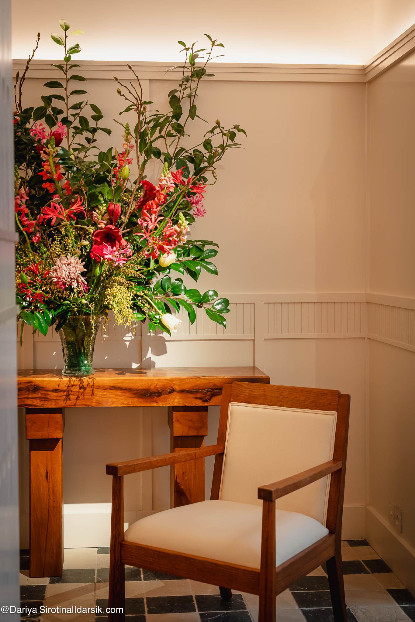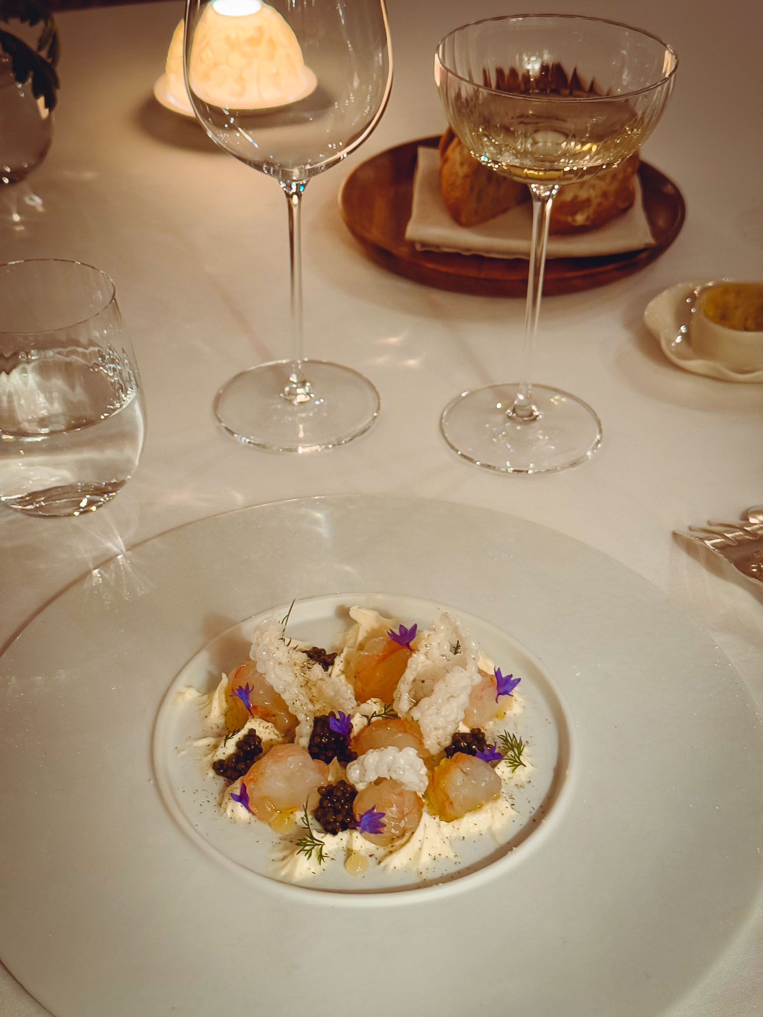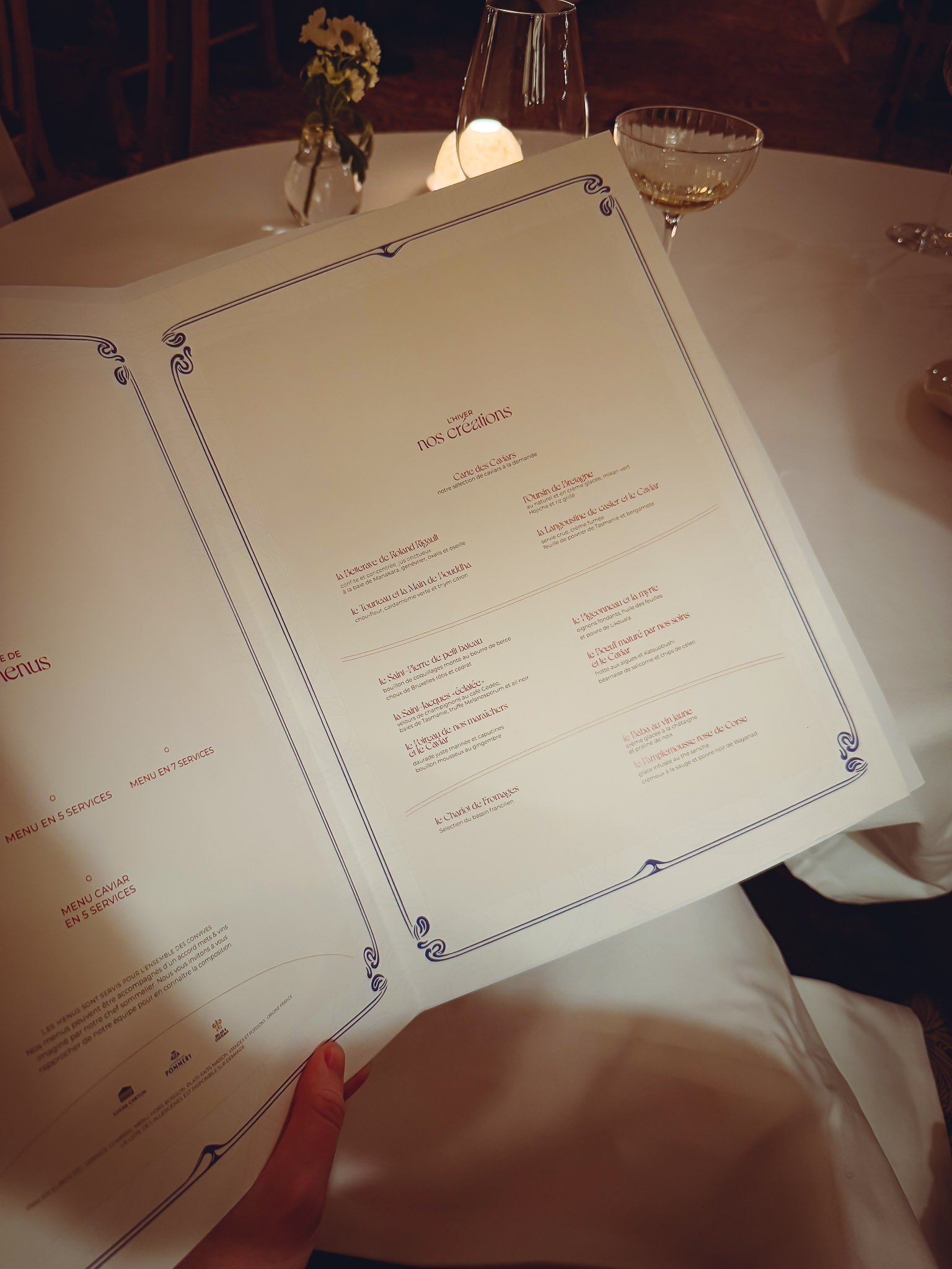 Относительно новый — работает второй год — ресторан великого Алена Дюкасса, сделанный вместе с Maison Baccarat. Скажу честно, я идти не хотела, но муж и газета Le Figaro очень настаивали. Я побаиваюсь заведений таких медийных шефов как Дюкасс, потому что небезосновательно полагаю, что их слава зачастую привлекает публику, заинтересованную не столько в гастрономии, сколько в погоне за чек-ином в соцсетях. Однако, пока этого не произошло.