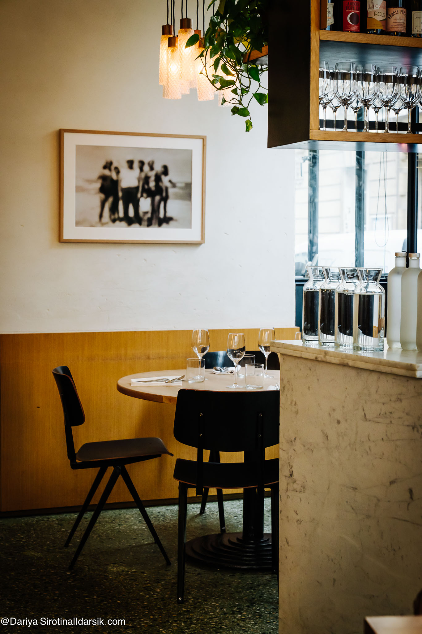 Passerini называют одним из лучших ресторанов итальянской кухни в Париже, но мне согласиться с тем, что это место — итальянское, сложно. Команда, шеф — да, итальянцы. Внимание к пасте — нет, не самое большое. Французских блюд и французских техник — да, много. Скорее это типичное парижское бистро новой волны с некоторыми итальянскими акцентами. Меню здесь меняется каждую неделю; центральное место в нем занимают блюда à partager, то есть те, которыми нужно делиться. Если застанете, берите голубя в двух подачах: потроха сервируются с феноменальной домашней плоской пастой, а сам голубь появляется на столе в красивейшей медной сковородке божественно розовым внутри, с аппетитной корочкой и с соусом демигляс.