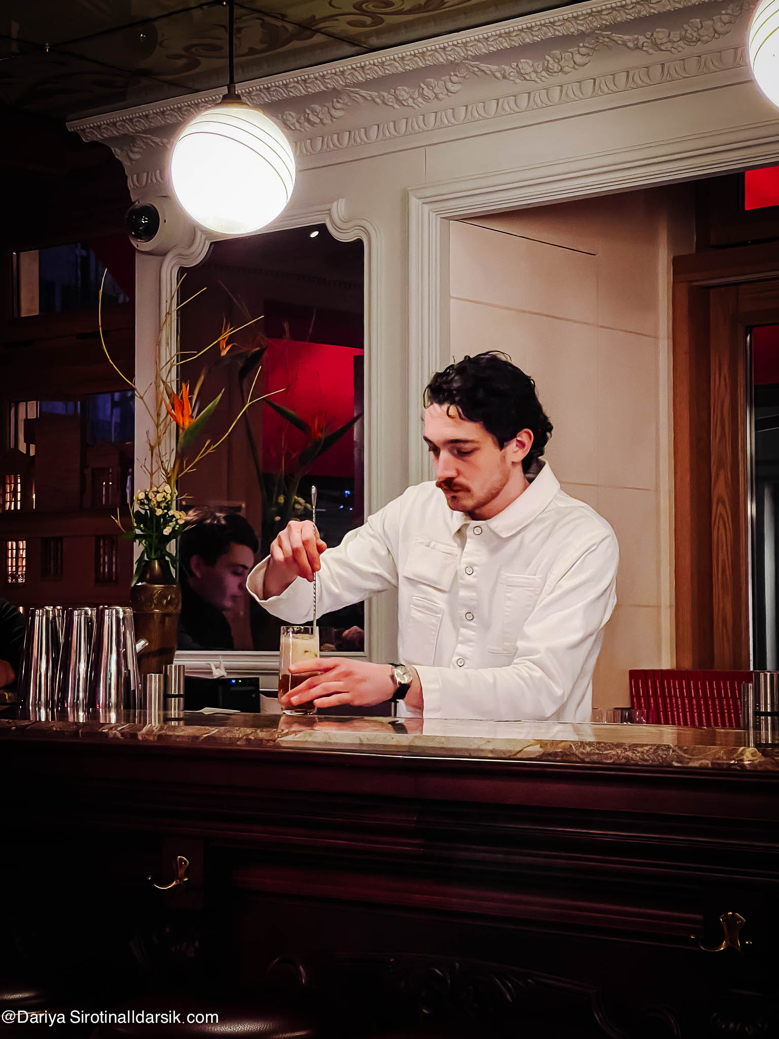 Это один из лучших баров Парижа. Его основатель, Франк Оду (Franck Audoux), — один из главных специалистов по французским коктейлям в мире. Первый его бар с тем же названием открыт в крошечном закутке в далеком от туристов 16 округе. Мы с мужем были там несколько лет назад, остались под большим впечатлением и были рады тому, что теперь Cravan есть на бульваре Сен-Жермен. Бар занимает несколько этажей, барные карты и еда на каждом этаже отличаются.