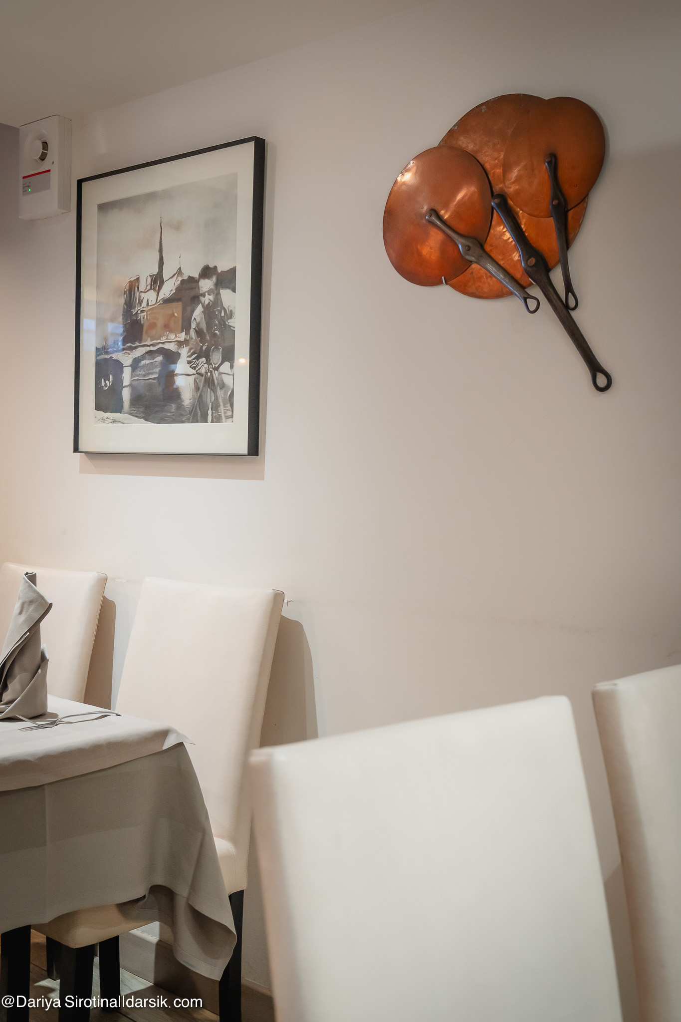 Бистро в седьмом округе, вдалеке от туристических толп, прославленное не только своей кухней, но и тем, что здесь обедал комиссар Мегрэ. Его столик , гурмана и почетного гостя, отмечен табличкой. Работает бистро больше 80 лет! Скромный маленький зал, чьим единственным украшением являются невероятной красоты полы. Короткое меню буквально из 10 позиций. Белые скатерти. В зале два человека — муж и жена, оба в возрасте, скорее всего владельцы. Еда восхитительна в своей простоте. Солнечник со сливочным маслом, разогретым до появления орехового вкуса , был просто невероятным.