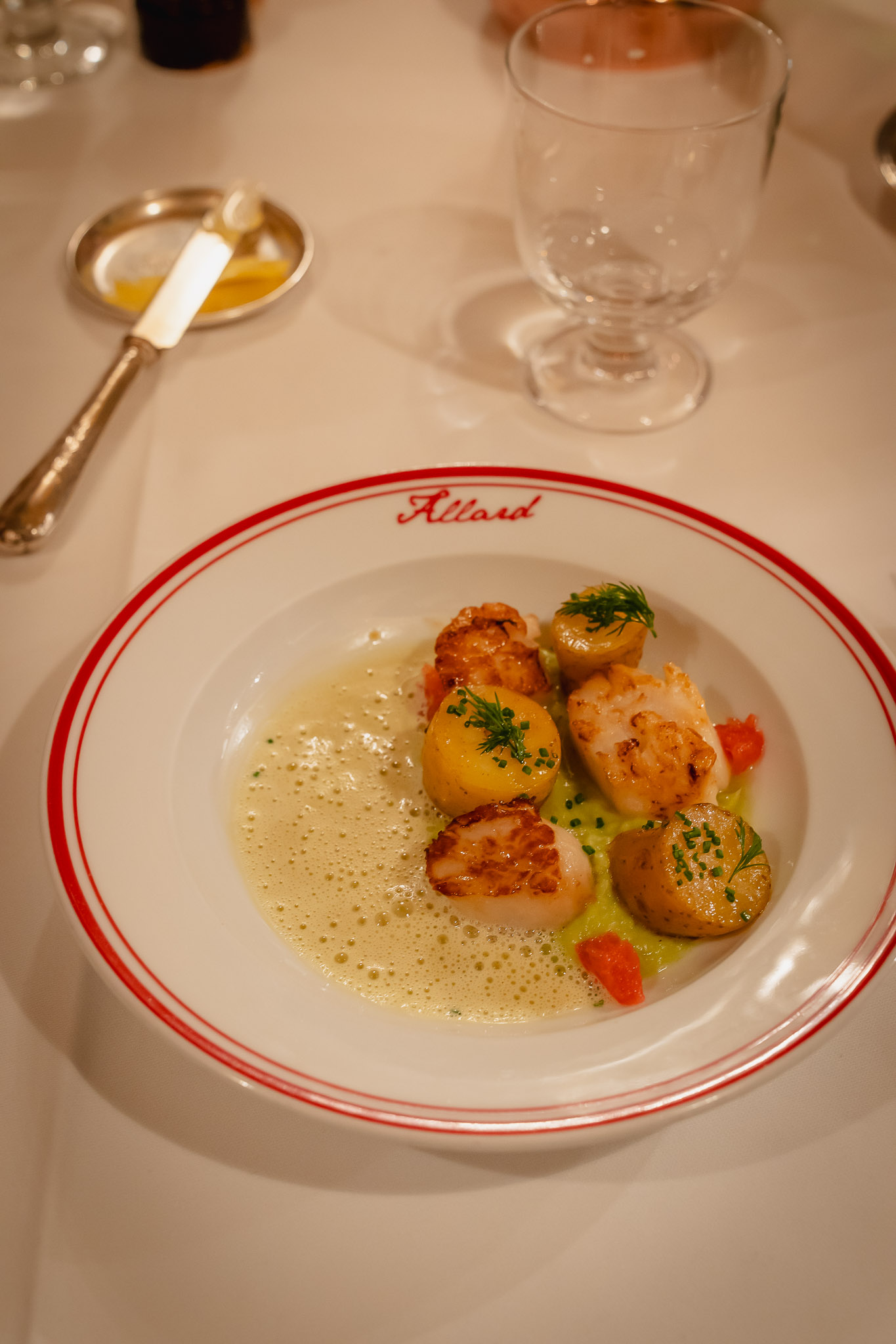 Французские шефы очень любят брать в управление всякие исторические бистро и придавать им свежести или возвращать былой лоск. Не все такие обновления оказываются удачными: например бистро Benoit того же Дюкасса меня, помнится, очень разочаровало. В Allard мне понравилось гораздо больше: публика была преимущественно французской, сервис с редкой в Париже теплотой (тут вам не Италия, рагацци!), теснота, теплый свет, ощущение аутентичности. Мы шли на запеченную курицу, заранее изучив меню. Вот ее вы, если пойдете по моим стопам, не берите. Не стоит она уверенных 92 евро, которые за нее просят. В нашем московском Bambule курица гораздо лучше! Берите, если придете в обед, комплексное меню. Первое, второе и компот за 34 евро. И это будет value for money или, как говорят французы, bon marché.