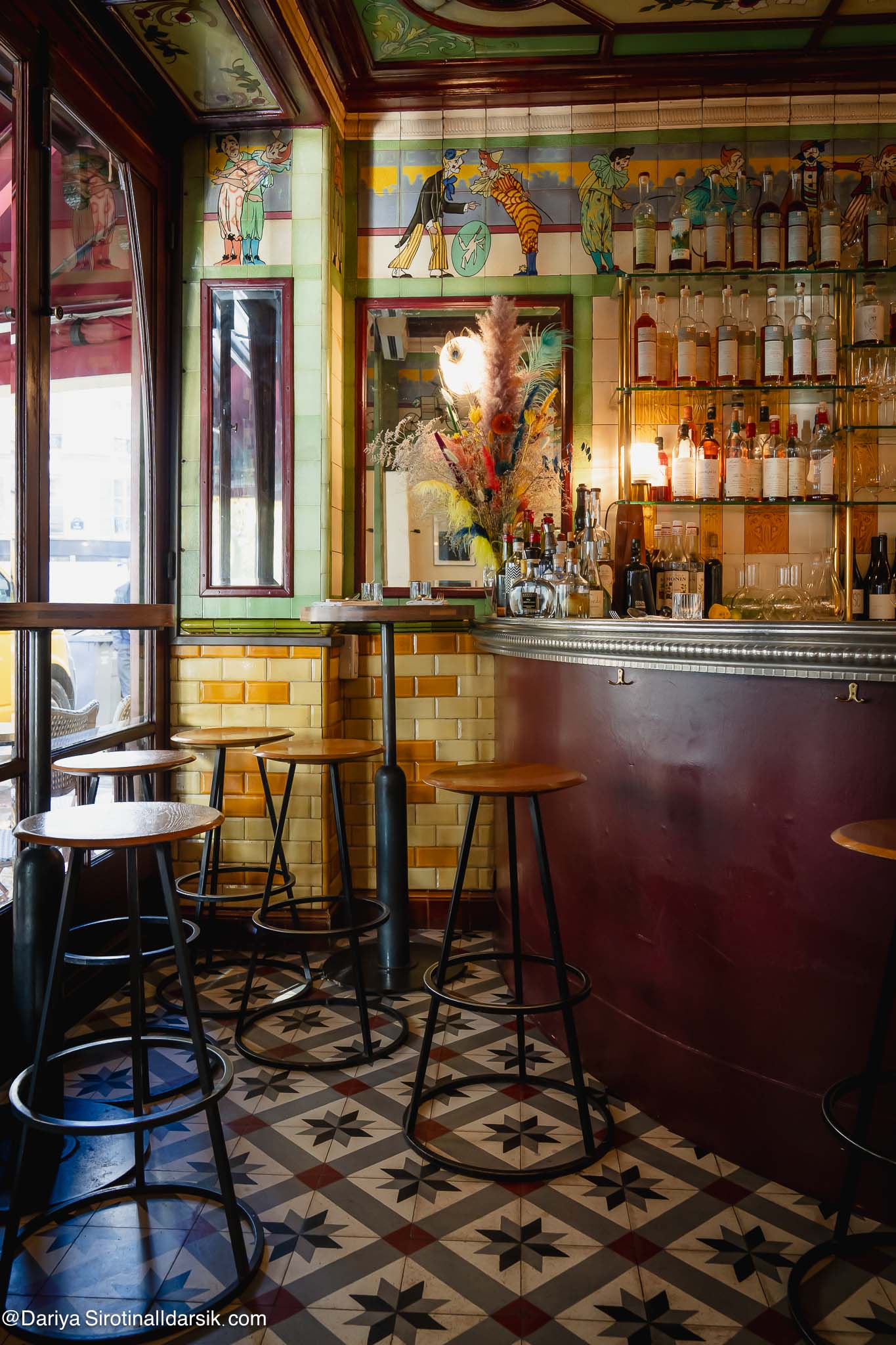 Это самая небольшая подборка из всех, включенных в этот пост, но не потому, что в Париже никто не пьет аперитив — пьет, конечно! Но чаще всего занимаются этим парижане на террасах классических кафе, благо, что хлопнуть стакашку шампанского можно на любом углу. Но в моем списке любимых мест уже несколько лет фигурируют вот эти два бара, стоящие специального визита.