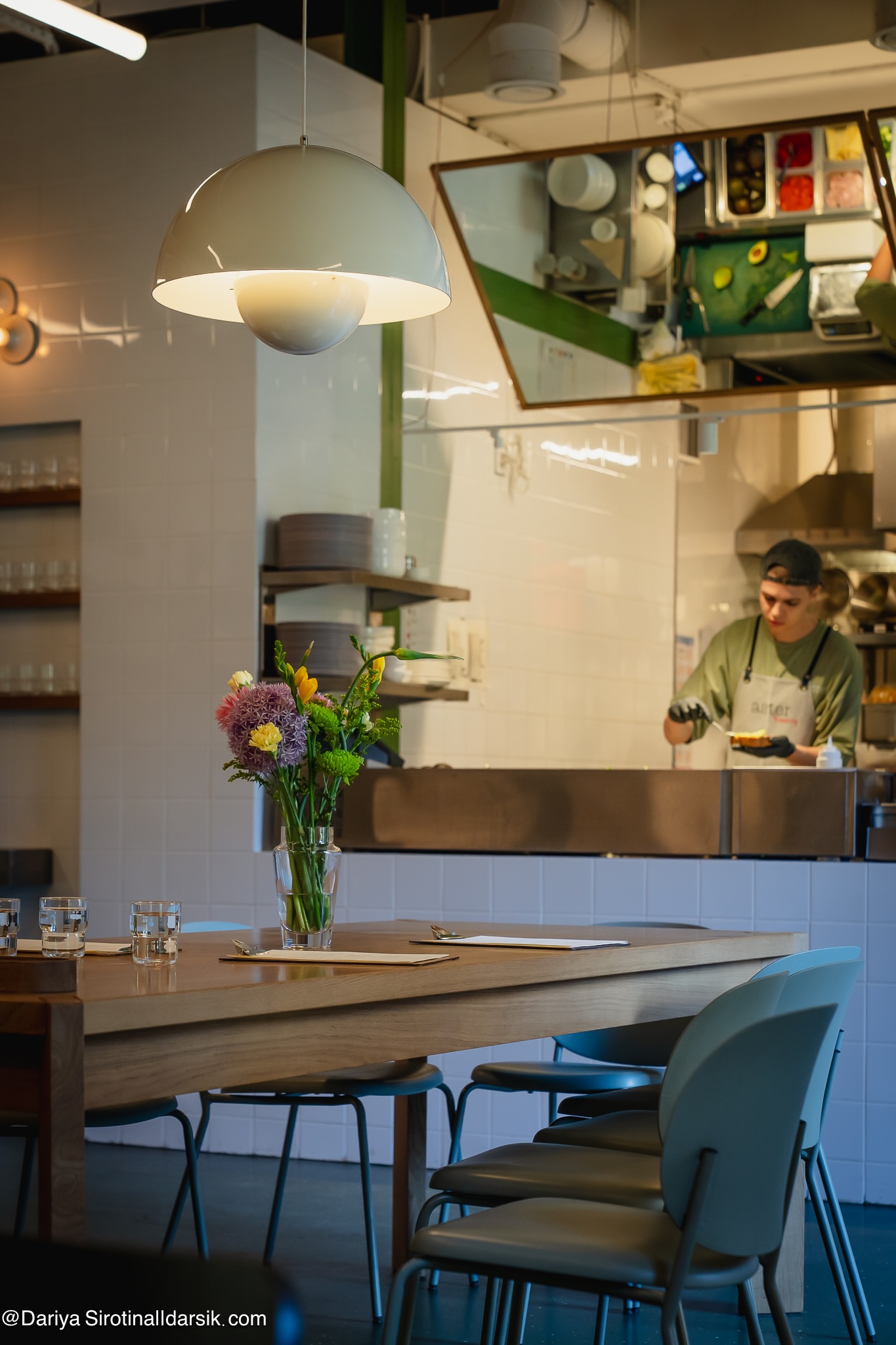 Кафе от команды Aster в книжном в «Доме Зингера», выходящее окнами на Казанский собор. По формату это бистро для быстрого и спонтанного завтрака, ланча, чашки кофе или бокала вина, по факту — скорее ресторан, в котором нужно столик бронировать заранее или быть готовым постоять в очереди на входе. Причина ажиотажа — локация и вид из окон. Если вы везете в Петербург, например, маму, привести ее на завтрак сюда идея лучше, чем выбрать Aster — настрой у Renè Cafe более интеллигентский.
