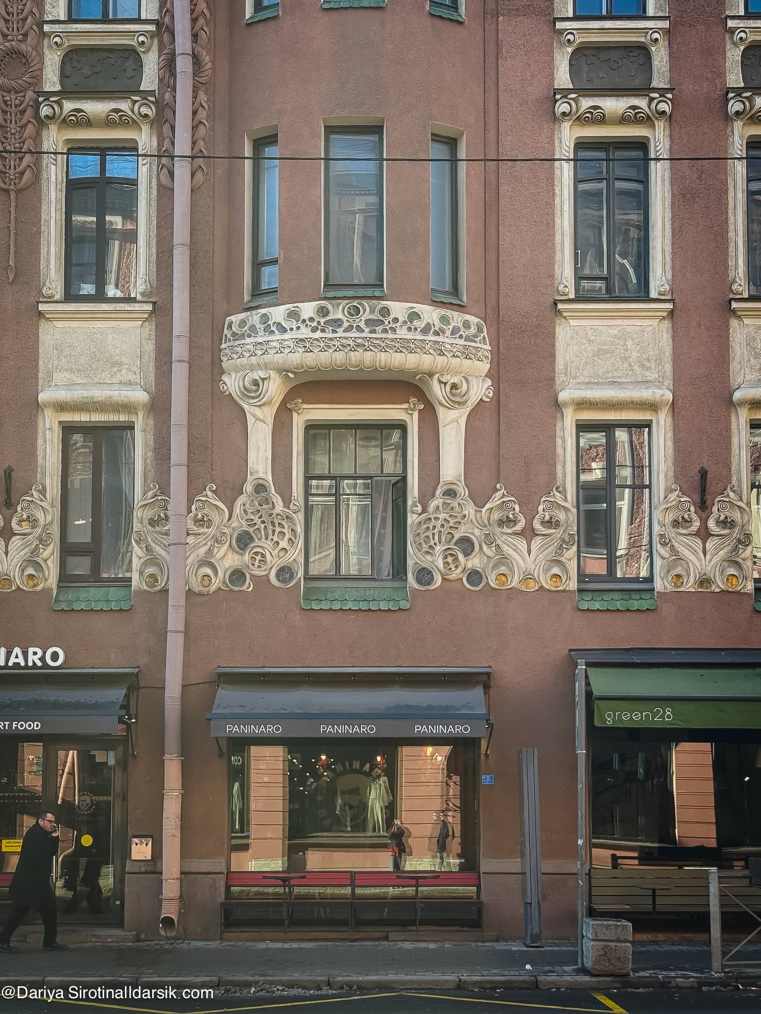 Из Sight гулять — не перегулять! Петроградская сторона прекрасна многим, но в первую очередь двумя вещами: отсутствием толп туристов и отборнейшим северным модерном. Так принято называть архитектурный стиль, сложившийся на рубеже 19 и 20 веков в северной Европе и характеризующийся большим вниманием к национальным и фольклорным мотивам и темам. Облицовка грубым гранитом, асимметричные формы, разновысокие окна, массивные башни: многие дома начинают здесь напоминать скорее крепости или замки, чем городское жилье. Если центр Петербурга имперский, статный, окно в Европу в версии восемнадцатого века, то Петроградка — то же окно, но в вариации рубежа 19 и 20 веков. Рассмотрите, например, доходный дом Лейхтенбергского на Большой Зелениной, 28 с огромным мозаичным фризом, состоящим аж из пяти панно с городскими и природными пейзажами — обязательная точка для всех, кто интересуется архитектурой Петербурга.