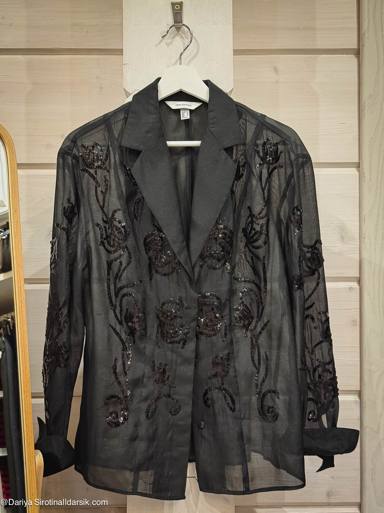 - Прозрачная блузка с пайетками H&M. Для выхода в театр. Под нее — бельевой топ с бархатной отделкой.