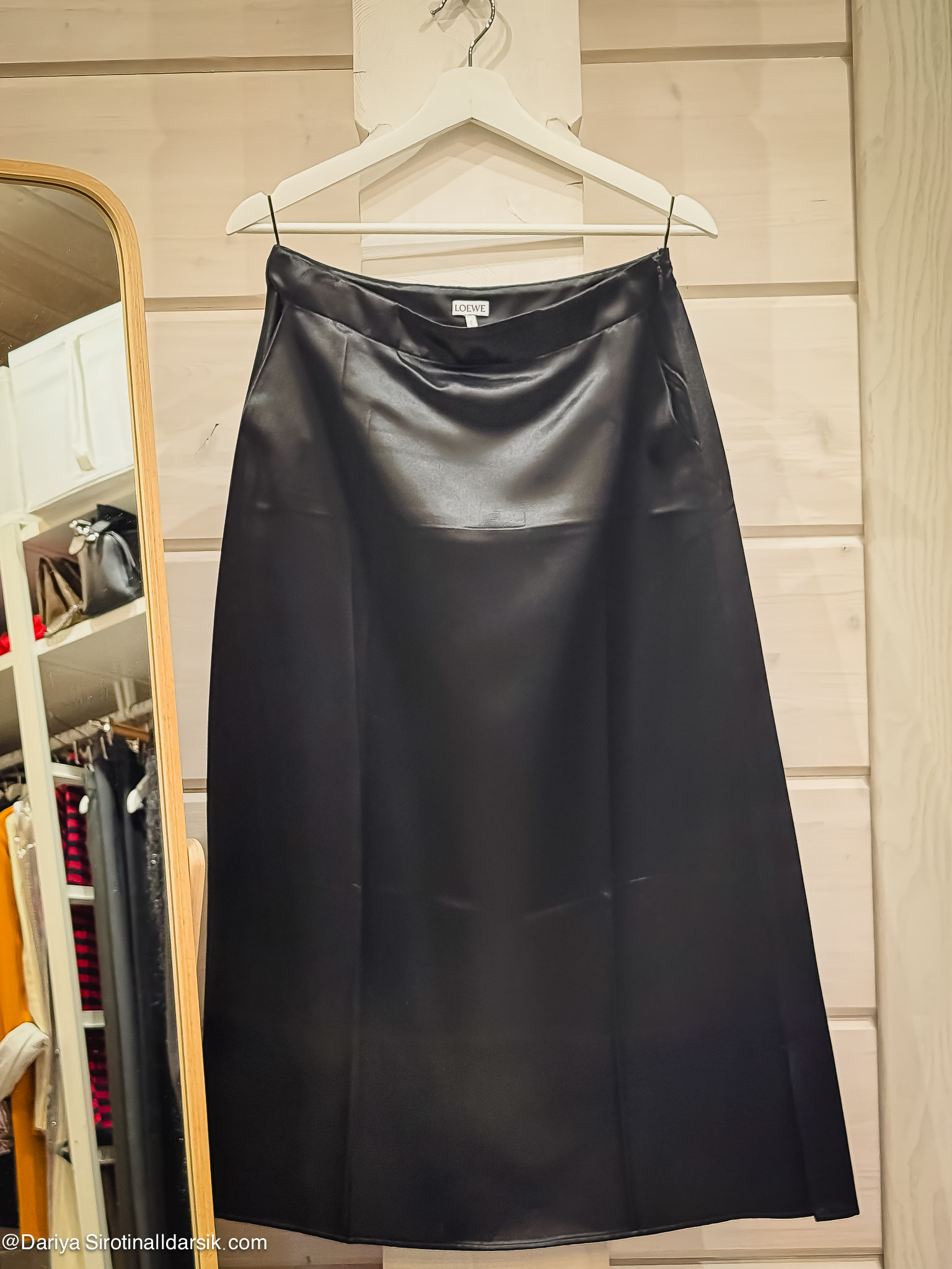 - Атласная юбка с заглаженными складками Loewe. Одна из моих любимых вещей, придающая нарядность за счет ткани и — одновременно! — снижающая пафос за счет складок.