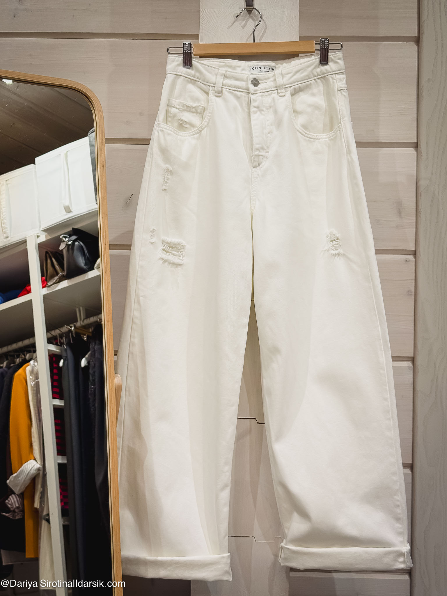 - Белые джинсы Icon Denim. С длиной можно играть: подвернуть или оставить длинными.