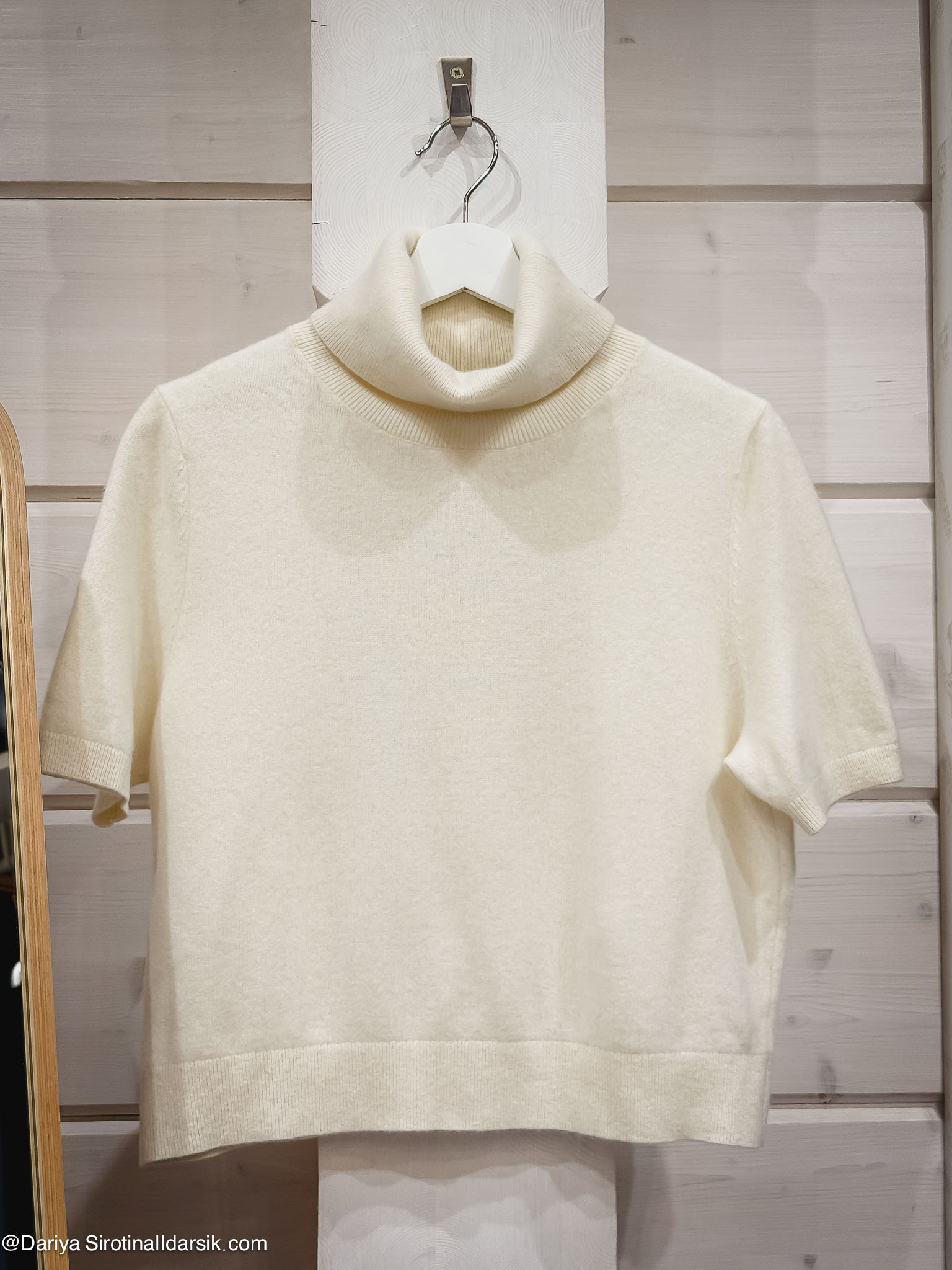 - Кашемировый джемпер с короткими рукавами Mango. Хочешь днем, хочешь — вечером носи: универсальная штука.