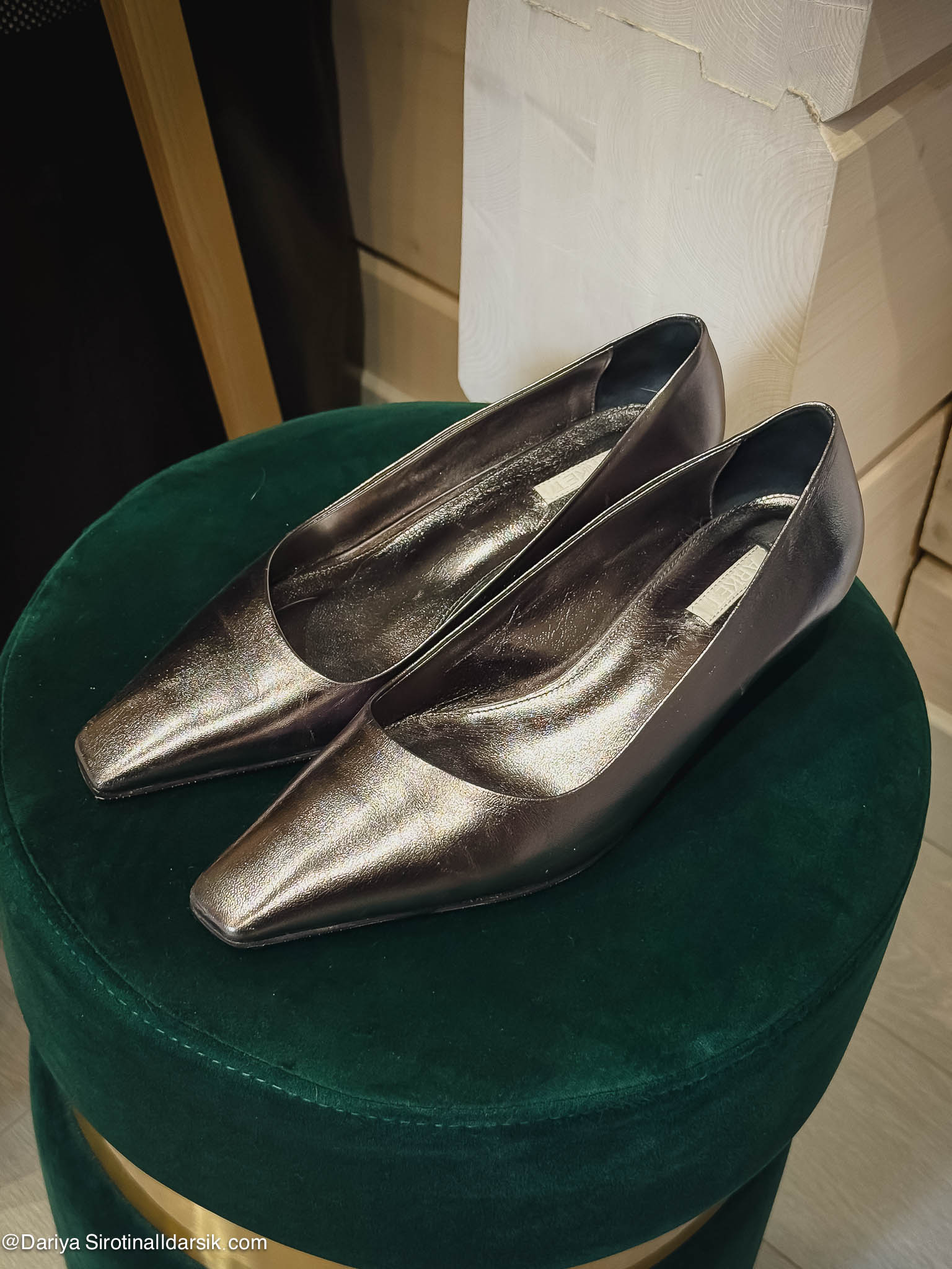 - Серебряные туфли Arket. Выбрала их для театра. Я вообще неровно дышу к золотой и серебряной обуви.