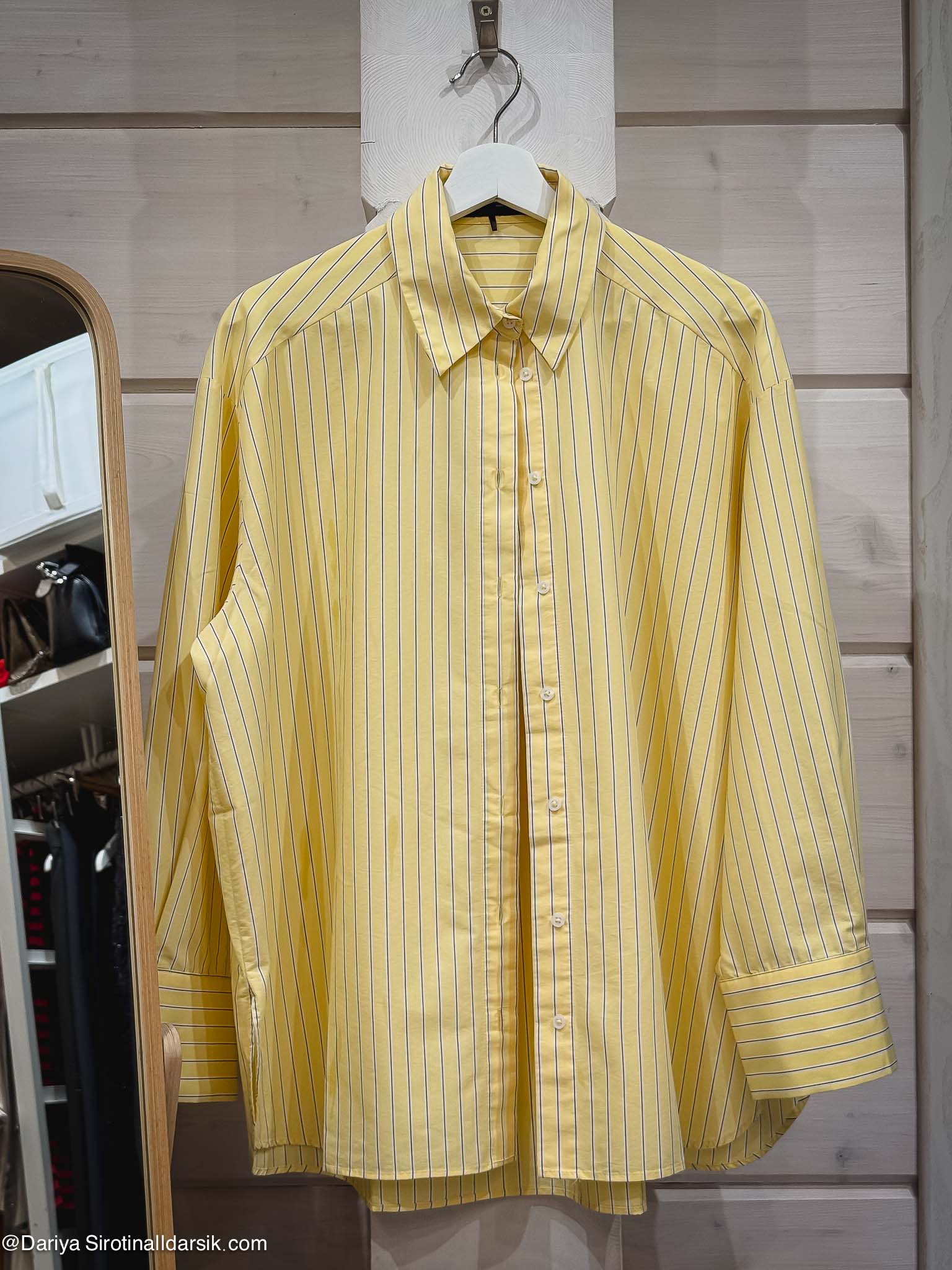 - Желтая рубашка в полоску Zara. Объемная, красивого весеннего оттенка.