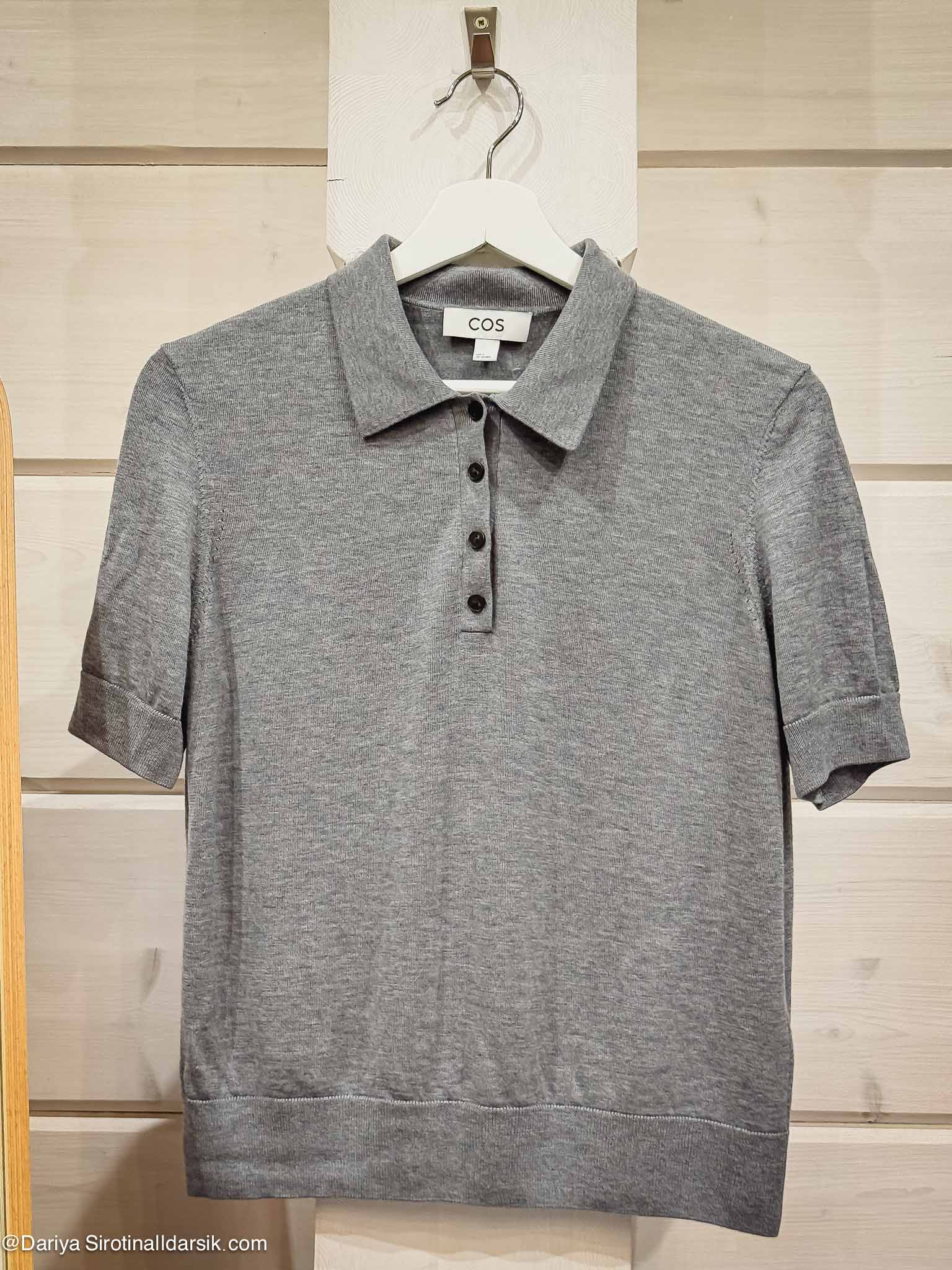 Оказались лишними вот эти четыре топа: джемпер и поло COS, серый топ Issey Miyake и черный Zara. Я планировала их как первый слой под жакеты или плащ, но погода оказалась холоднее, чем я рассчитывала, и в дело они не пошли.