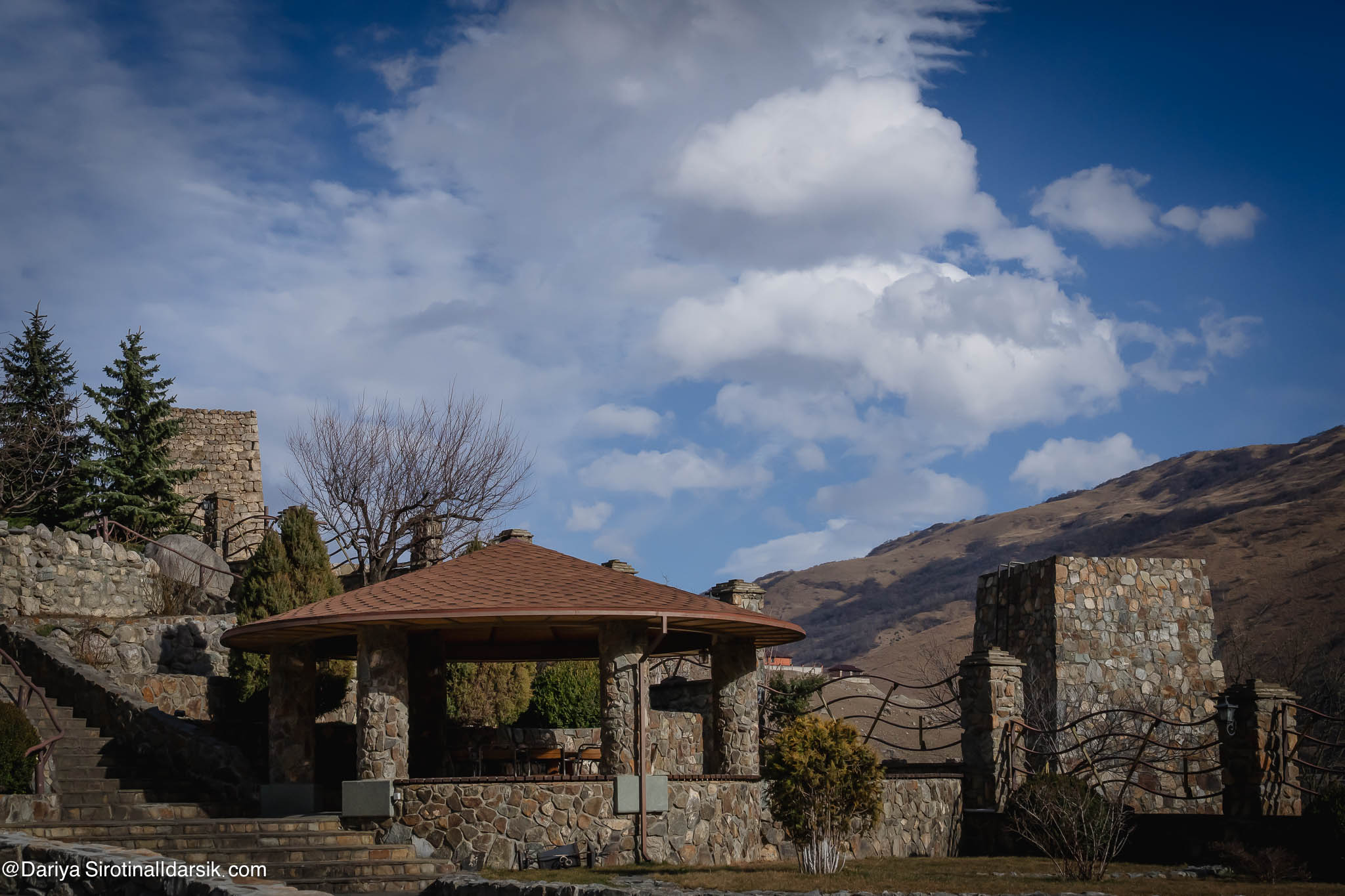 Училась печь осетинские пироги я в этно-деревне «Хидикус-Аул» в Куртатинском ущелье. Это дивной красоты места примерно в часе с небольшим езды от Владикавказа. Представьте себе широкое ущелье, по краям которого встают горы в снежных шапках. Прибавьте к этому голубое небо, то тут, то там виднеющиеся на склонах гор осетинские каменные башни и сладкий горный воздух.