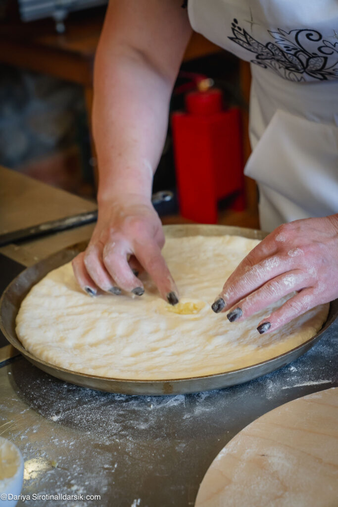 Во время своего путешествия по Северной Осетии мне удалось не только многократно попробовать знаменитые осетинские пироги, забыв, конечно, о всех своих диетических принципах, но и научиться самой их печь. Я записала рецепт за опытной хозяйкой в этно-деревне «Хидикус-аул» в Куртатинском ущелье. И делюсь им — и всеми собственноручно освоенными лайфхаками — с вами.